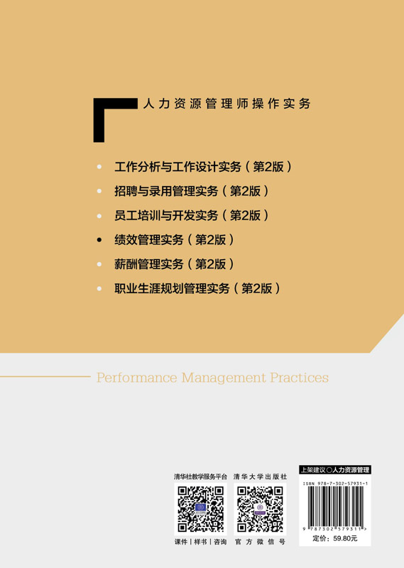 本书配套教学课件已上传:https://pan.baidu.com/s/1-VakUT9QKTigCSP4dDzK9Q 提取码:6666(百度云盘)QQ:2577316833《绩效管理实务 (第 2 版)》实操性强,注重理论、工具方法和实际操作的有机联系,充分利用丰富的图表来直观地说明问题并结合案例进行分析。