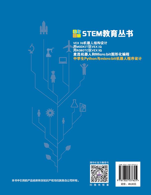 2001 年,“信息技术”课程成为小学四至六年级的必修课程之一,课程 的主要目标是培养学生的信息素养,提升学生运用信息技术的能力。2017 年 9 月,高考综合改革落实新的课程方案、新的课程标准和新的高考方案。由此 可见,信息技术课程正在随着时代的进步发生着巨大变革,在新的教育发展 背景下,学校信息技术教育被赋予了全新的意蕴与内涵。信息技术的学习内 容不再局限于教材,而是要融合多学科知识,设计项目化的学习主题,引导 学生通过小组合作学习的方式全面提升学生信息素养与综合素质。 基于Python 语言的机器人程序设计课程是在新时期中小学信息技术课程 改革背景下备受学校支持、学生喜爱和家长认可的课程之一。一方面,在中 小学中开设Python 语言编程课程,不仅能教会学生基础的Python 语法知识, 如数据类型、类与对象的概念、程序结构、各类库与函数的使用方法等,更 加重要的是Python 语言的缩进规则能够帮助学生在编写第一条程序时就开始 养成良好的编程习惯,这使得学生能够更好地理解程序的算法逻辑并为他们 日后继续更加深入地学习编程知识甚至成为专业的编程人员打下坚实的基础。 另一方面,将Python 语言编程与开源硬件结合起来进行学习是明智之举,单 纯的语法学习枯燥并且抽象,但是如果选择一款具有娱乐性、创造性的开源 硬件辅助开展编程教学实验,肯定能够帮助更多的学生在学习编程这条路上 走得更远。本书中使用的micro:bit 控制板与麦昆机器人小车可以与学生编写 的Python 程序即时互动,毫不费力地将虚拟的程序代码表现为现实的物理现 IV ...