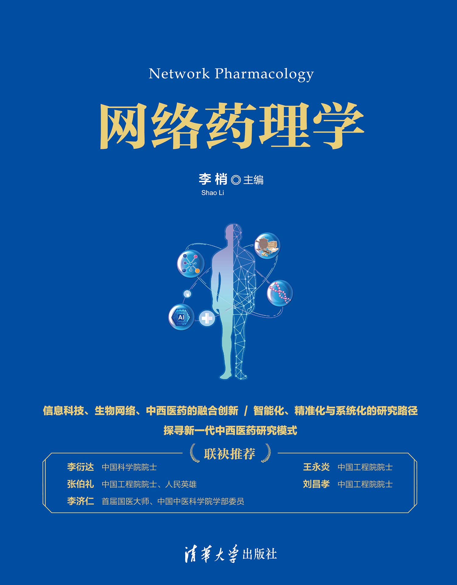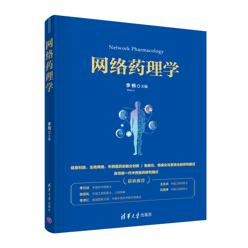 前 言 当前“单基因、单靶标、单药物”医药研究模式是在还原论思想下形成的,这一研究模式取得了很大的发展,为近现代医学和药学的科学化、现代化及其昌明做出了巨大贡献。然而,这种研究模式难以阐释以整体为特点的中医药的科学基础,也难以在诊断和治疗过程中系统地打开人体这一“黑箱”。同时,目前肿瘤等重大疾病的发病率居高不下、新冠肺炎等突发疾病席卷全球,可见,在“疾病”这一共同的敌人面前,中西医学还不完善,需要携起手来共同发展。医学研究亟须探索既符合中医整体特色又适应复杂疾病系统诊疗特点的新思路、新方法,中医学、现代医学共同期待研究模式和研究方法的革新。 中医药诊疗思想和丰富经验中的“整体”特色,一方面凸显了还原论医药研究模式的局限,另一方面却孕育了以网络和系统为特色的新一代研究模式的产生。其中,一个重要标志就是从复杂生物“网络”这一整体的角度理解复杂病证内在机理和药物作用机制,这为医药研究模式的深刻变革提供了前所未有的机遇,同时也带来了挑战。利用“网络”重拾“整体”,作为中西医药与智能信息交叉创新的突破口,有望构建重大疾病中西医防治的新体系。在新的科技背景下,网络药理学应运而生。 网络药理学是人工智能和大数据时代药物系统性研究的新兴前沿学科,也是融合系统生物学、生物信息学、网络科学、多向药理学、系统药理学等相关学科的新学科,强调从系统层次和生物网络的整体角度出发理解疾病,解析药物及其治疗对象之间的分子关联规律,揭示药物的系统性药理机制,指导新药研发和临床治疗。所谓“网络”,一方面,指的是描述生物系统中要素和要素之间关系的描述方式和分析方法,例如,采用复杂网络科学中的理论...
