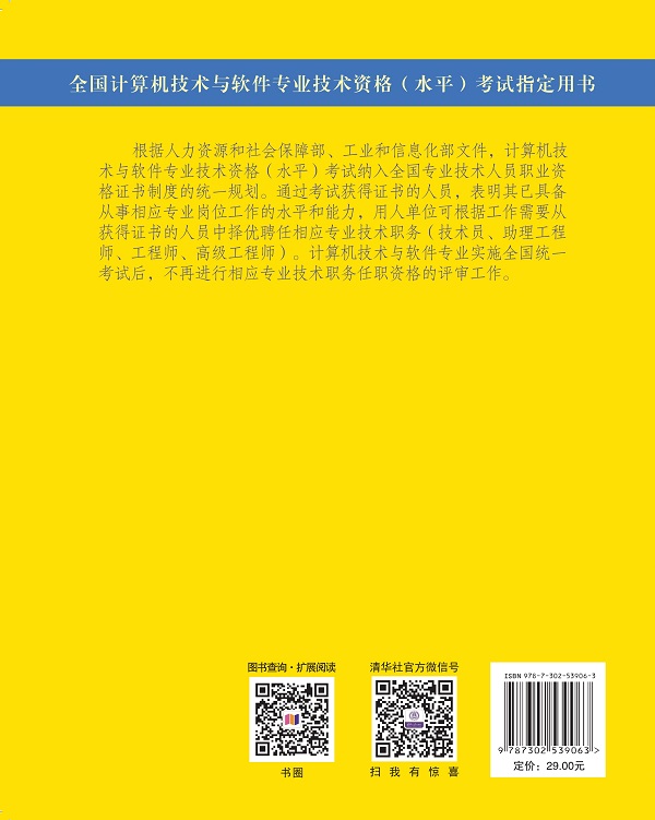前 言 根据国家有关的政策性文件,全国计算机技术与软件专业技术资格(水平)考试(以 下简称“计算机软件考试”)已经成为计算机软件、计算机网络、计算机应用、信息系统、 信息服务领域高级工程师、工程师、助理工程师(技术员)国家职称资格考试。而且, 根据信息技术人才年轻化的特点和要求,报考这种资格考试不限学历与资历条件,以不 拘一格选拔人才。现在,软件设计师、程序员、网络工程师、数据库系统工程师、系统 分析师、系统架构设计师和信息系统项目管理师等资格的考试标准已经实现了中国与日 本互认,程序员和软件设计师等资格的考试标准已经实现了中国和韩国互认。 计算机软件考试规模发展很快,年报考规模已经超过 50 万人,二十多年来,累计报 考人数超过 500 万人。 计算机软件考试已经成为我国著名的 IT 考试品牌,其证书的含金量之高已得到社会 的公认。计算机软件考试的有关信息见网站www.ruankao.org.cn中的资格考试栏目。 对考生来说,学习历年试题分析与解答是理解考试大纲的最有效、最具体的途径。 为帮助考生复习备考,全国计算机专业技术资格考试办公室组织编写了信息安全工 程师 2016 至 2018 年的试题分析与解答,以便于考生测试自己的水平,发现自己的弱点, 更有针对性、更系统地学习。 计算机软件考试的试题质量高,包括了职业岗位所需的各个方面的知识和技术,不 但包括技术知识,还包括法律法规、标准、专业英语、管理等方面的知识;不但注重广 度,而且还有一定的深度;不但要求考生具有扎实的基础知识,还要具有丰富的实践 ...
