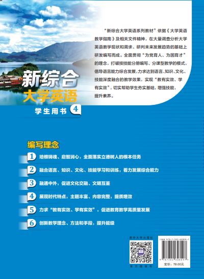总 序 中国特色社会主义进入新时代,我国全面建成小康社会,实现了第一个百年奋斗目标,又乘势而上开启了全面建设社会主义现代化国家的新征程,向第二个百年奋斗目标进军。在这极其关键的中华民族伟大复兴的征程中,无论是文化交融、文明互鉴,经济全球化发展,“一带一路”建设,人类命运共同体构建,还是国家高质量发展,世界一流高校和学科建设,都需要我国的高等教育担负起历史的重任,为国家、为民族、为人类的进步事业培养和造就千百万具有家国情怀和全球视野,了解国际事务治理,精通专业,掌握外语,胜任国际合作,具有参与国际竞争能力的高素质、创新型人才。在这新征程中,国家各项事业的发展对高质量高等教育的需要,对科学知识和优秀人才的需求,比以往任何时候都更为迫切!有鉴于此,我们策划、组织编写了“新综合大学英语系列教材”。 教育部颁布的《普通高等学校教材管理办法》指出:“双一流”高校与高水平大学应发挥学科优势,组织编写教材,提升我国教材的原创性,打造精品教材。教材的质量和水准直接关系到人才培养目标的实现,对人才培养起着至关重要的作用。教材建设要关注科技发展动态和经济社会发展趋势,着眼未来,着眼创新人才和技术技能复合型人才培养需要。“新综合大学英语系列教材”的研发编写团队,认真研读国家对教材编写提出的新要求,领会其精神实质,充分领悟“教材体现国家意志,其核心功能是育人”的重要性,始终坚持正确的政治方向,牢固树立正确的世界观、人生观和价值观,大力弘扬社会主义核心价值观,倡导健康、积极向上的精神,充分贯彻并体现“为党育人、为囯育才”的理念和责任。“新综合大学英语系列教材”贯彻国家高等教育高质量发展...