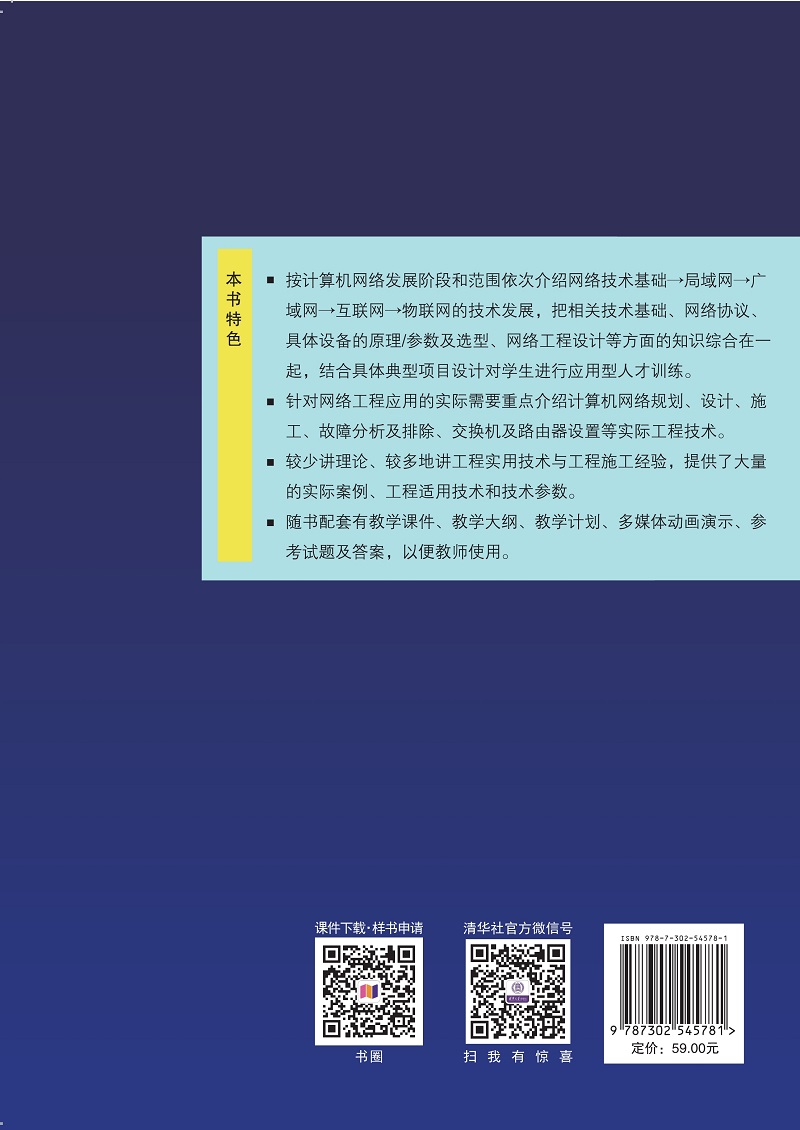 本书详细介绍计算机网络工程的基础理论、实际应用案例和最新技术,主要内容按计算机网络发展阶段和不断扩展的应用范围依次介绍网络技术基础、局域网、城域网、广域网、互联网和物联网,同时针对网络工程应用的实际需要介绍网络中心构建和网络管理、网络安全、网络故障分析与处理及网络设备设置。 本书的特点是紧扣网络工程的实践应用需求,较少讲理论,较多地讲工程实用技术与工程施工经验,提供了大量的实际案例、工程适用技术和技术参数。本书内容新颖、图文并茂,力图反映计算机网络实际规划、设计、施工、故障分析及排除、交换机及路由器设置等实际工程技术。 除第10章外,各章都附有习题、工程案例,以帮助读者学习理解和实际工程应用。随书配套有开放的全书教学课件(PowerPoint文件)、教学大纲、教学计划、多媒体动画演示、参考试题及答案,以便教师使用。 本书主要作为计算机类和电气信息类相应专业的大学本科生教材,特别适合作为应用型本科高校、独立学院、高职高专和职业培训机构的网络工程专业训练教材,对从事计算机网络工作的工程技术人员也有学习参考价值。