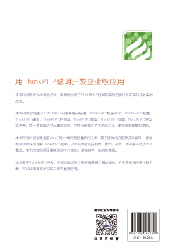 本书的内容涵盖了ThinkPHP 5开发环境的搭建、ThinkPHP 5框架简介、ThinkPHP 5配置、ThinkPHP 5路由、ThinkPHP 5控制器、ThinkPHP 5模型、ThinkPHP 5视图、ThinkPHP 5开发实例等。每一章都提供了大量的实例,并对代码进行了详尽的注释,便于读者理解和掌握。