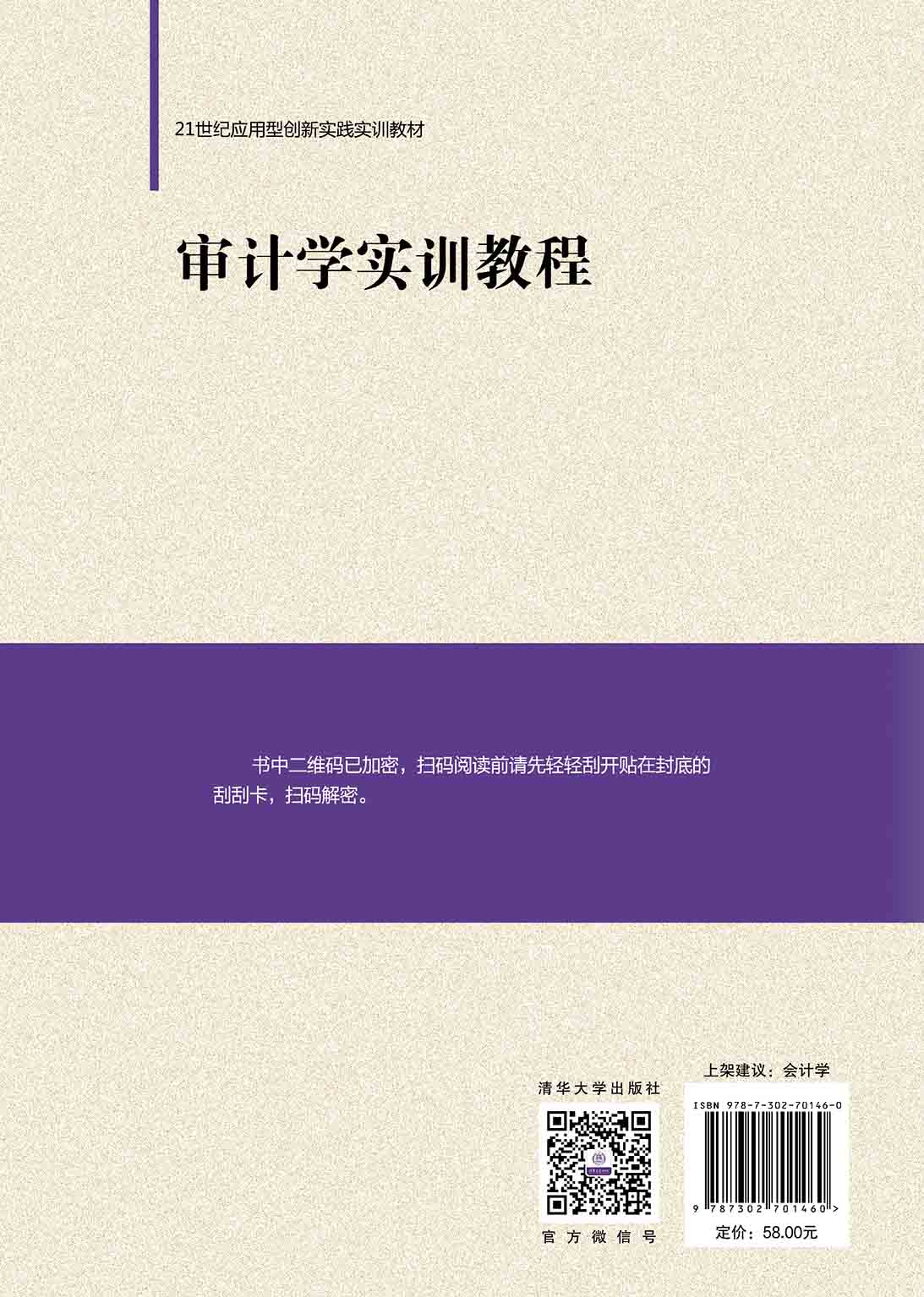 本书依据实际企业业务模拟,进行实训审计讲解与训练。全书共13章。第1章介绍审计模拟实训的目的和要求;第2章介绍被审计单位资料;第3章介绍常用的审计方法;第4章介绍被审计单位会计资料;第5~11章分别介绍审计实务的7部分内容实训,分别是接受审计业务与编制审计计划,销售与收款循环审计工作底稿的编制,采购与付款循环审计工作底稿的编制,生产循环审计工作底稿的编制,投资与筹资循环审计工作底稿的编制,货币资金审计工作底稿的编制,特殊项目审计工作底稿的编制。第12章和第13章分别就汇总审计工作底稿的编制及审计报告工作底稿的编制进行介绍。第5~12章每章都有相关的实训活动。教材配套提供相关数据及审计工作底稿表格电子文件,方便师生使用。