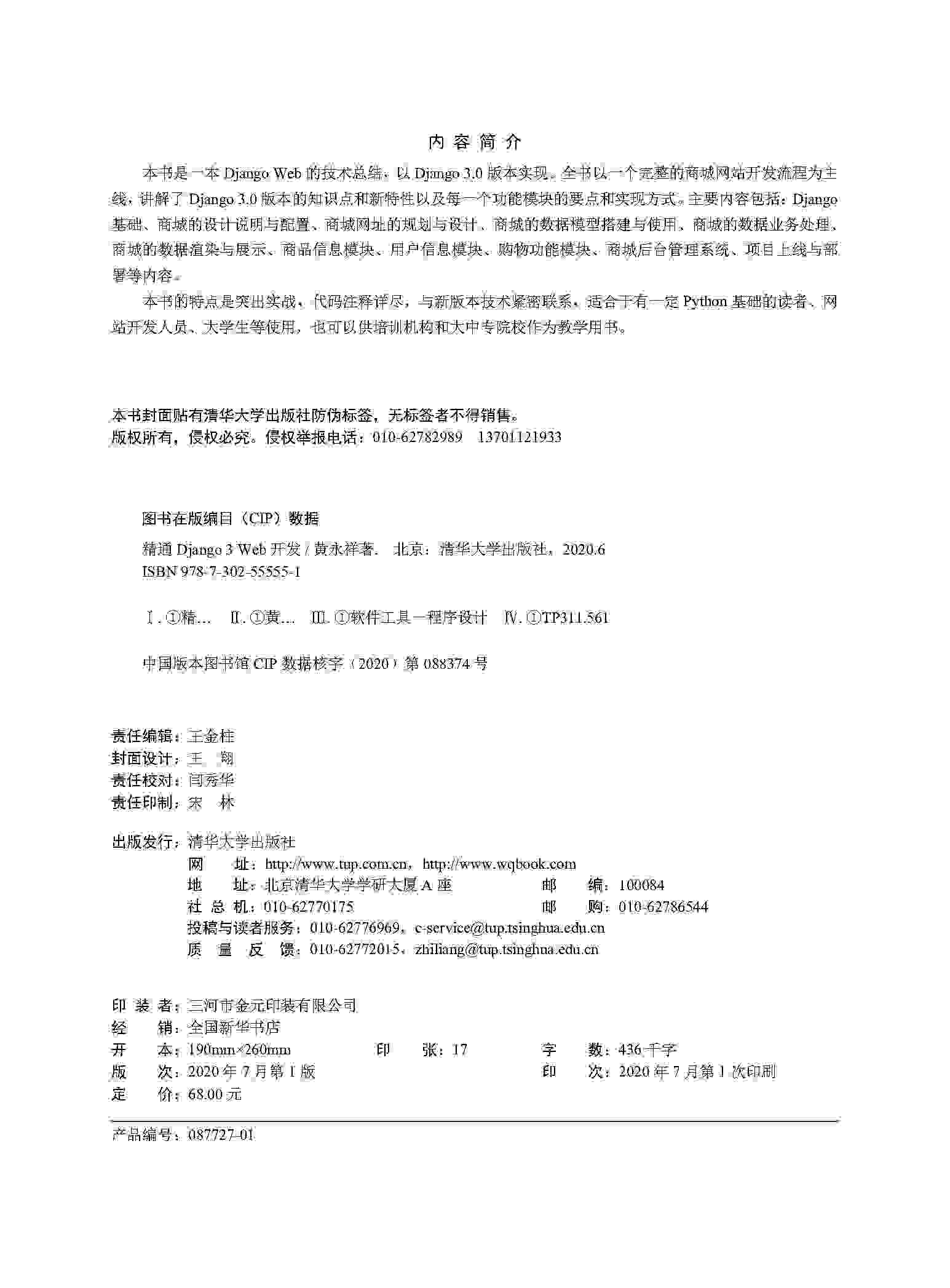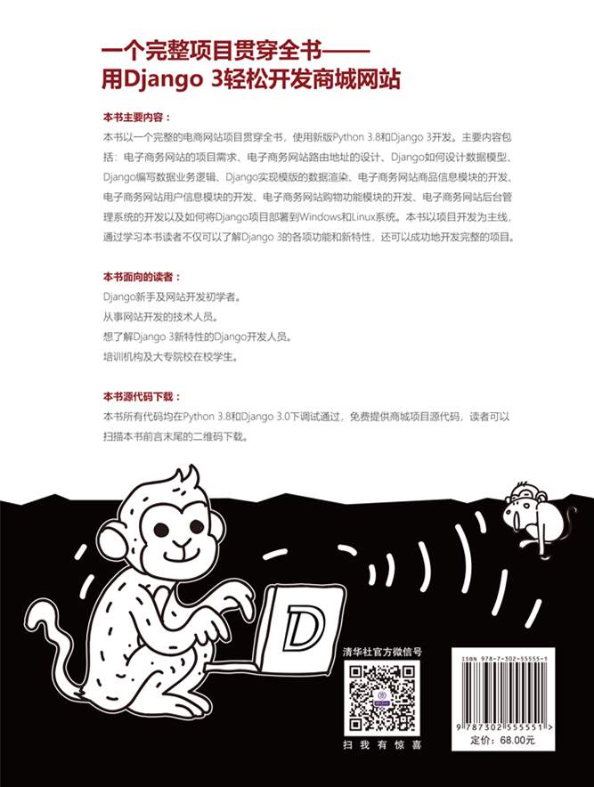 通过学习本书读者不仅可以了解Django 3的各项功能和新特性,还可以成功地开发完整的项目。