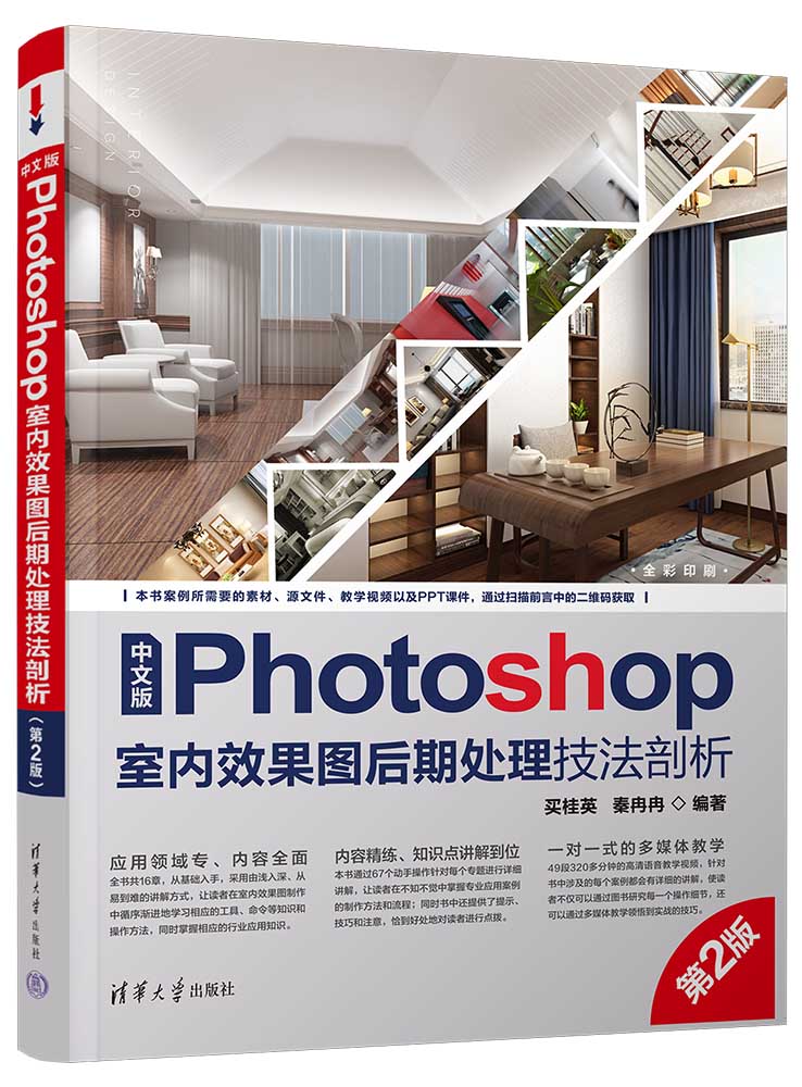 前言 在现代效果图行业中,室内外效果图分得很细,室内效果图的制作人员极少参与室外建筑效果图的制作,所以本书主要针对的是室内效果图的后期制作人员。 本书从基础的常用工具和命令介绍到多个经典的室内案例效果,兼具了基础手册和技术手册的多种特点。希望本书能够帮助读者解决学习中遇到的难题,提高技术水平,快速成为室内效果图后期处理的高手。 本书的内容安排如下。 ●第1章主要介绍Photoshop与室内效果图的概念、用途和特色,室内效果图与色彩和美术的关联,以及室内设计风格和室内后期处理的操作步骤,使读者了解室内效果图的各种风格特色。 ●第2章主要介绍Photoshop 2020的工作界面、图像的类型和格式,以及图层的相关内容。图层是Photoshop中一项重要的内容,各种素材和效果可以通过图层来辅助调整和制作。 ●第3章主要介绍Photoshop 2020的常用工具和命令,包括图像选择工具、图像编辑工具、图像选择和编辑命令以及图像调整命令等。 ●第4章主要介绍对效果图中错误材质的调整以及对不理想画面构图的调整、颜色通道的使用和效果图的构图等。 ●第5章主要通过几个典型且实用的素材实例的制作,介绍常用的室内配景的抠取、投影、阴影以及植物、人像和玻璃的处理手法。 ●第6章主要介绍多个室内常用光效的制作方法。 ●第7章主要介绍效果图艺术特效的制作,包括水彩效果、油画效果、素描效果、水墨画效果等。 ●第8章主要介绍新中式家装的后期处理技巧和方法,包括效果图整体、局部及色调的处理、以及装饰素材的添加。 ●第9章主要介绍北欧卧室效果图的后期处理,包括效果图整体...