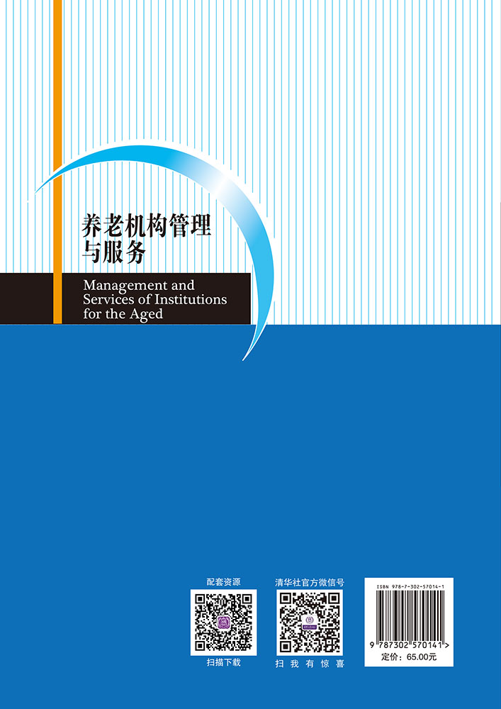 《养老机构管理与服务》阐述养老机构从筹备建设到日常运营过程中面临的管理和服务问题。“上篇——养老机构管理”在综观我国养老机构发展背景、服务定位、类型划分、管理体系的基础上,从建设、岗位设置、行政、人事、财务、后勤、信息化、安全与事故、培训和考核等方面介绍养老机构的管理内容;“下篇——养老机构服务”在分析养老机构服务内容及体系、入住老年人能力评估的基础上,从照护服务、医疗服务、康复服务、膳食服务、心理健康服务、社会工作介入服务等方面介绍养老机构的服务内容。 《养老机构管理与服务》可作为高校公共事业管理、劳动与社会保障、行政管理、社会工作等专业本科学生的教材,也可作为养老机构工作人员的培训教材。