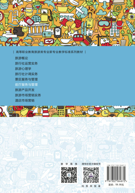 本书以学生的就业为导向,根据行业专家对前厅服务所涵盖的岗位群进行的任务和职业能力分析组织内容,旨在培养学生的前厅服务技能和管理能力。本书以前厅应具备的岗位职业能力为依据,符合学生的认知规律,紧密结合各岗位的技能要求,按照前厅认知、预订服务、接待服务、礼宾服务、问讯服务、总机服务、收银服务、销售管理、客户关系管理等具体实践过程安排学习项目,使学生在“做”中“学”,在“学”中“做”,掌握各项前厅服务的基本操作要领,加深对专业知识和服务技能的理解和应用,满足学生职业生涯发展的需要。 本书适合作为高等职业院校酒店管理、旅游管理、会展管理及现代服务业相关专业群的必修课程教材,也可供酒店行业人士和社会一般读者阅读参考。