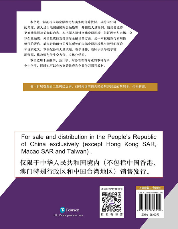 这是一部深入剖析国际金融管理的优秀专著。以其在金融研究领域的性、突出反映当代国际新兴市场环境的现实性、对错综复杂的国际金融管理所做阐释的明晰性而著称,通过对国际金融环境、外汇风险度量、金融公司融资、国外投资决策、跨国经营管理、跨国金融管理前瞻等的线性描述,立体而鲜明地阐明了这样一个基本观点:跨国公司的成功始终依赖于其对投资所在国国内产品市场、生产要素市场和金融资产市场缺陷的确认能力及从中获利的能力。