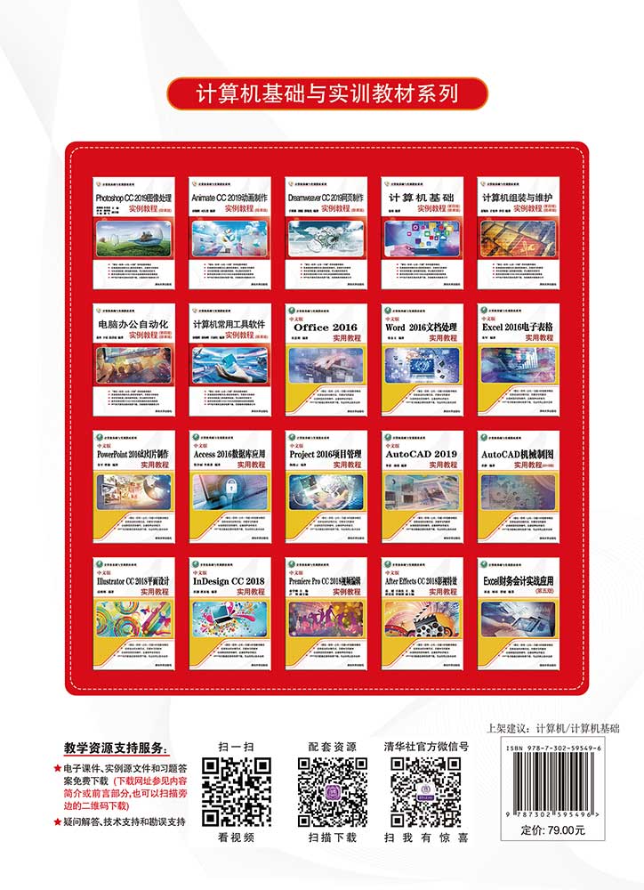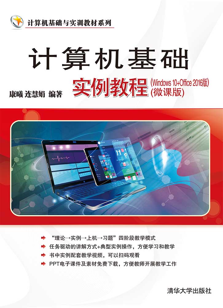 《计算机基础实例教程(Windows 10+Office 2016版)(微课版)》是“计算机基础与实训教材系列”丛书中的一种,该书从教学实际需求出发,合理安排知识结构,由浅入深、循序渐进地讲解Windows 10操作系统和办公软件Office 2016的使用方法。全书共分10章,主要内容如下。 第1章介绍计算思维与算法的基本概念,计算机的发展、类型及其应用领域等内容。 第2章介绍操作系统的基本概念,着重讲解Windows 10操作系统的应用技巧。 第3和第4章介绍Word 2016基础操作以及格式化与排版文档的操作方法。 第5~7章介绍Excel 2016基础操作以及整理与分析工作表、使用公式与函数的操作方法。 第8和第9章介绍PowerPoint 2016基础操作以及设置与放映演示文稿的操作方法。 第10章介绍计算机网络与信息安全相关知识。 《计算机基础实例教程(Windows 10+Office 2016版)(微课版)》图文并茂、条理清晰、通俗易懂、内容丰富,在讲解每个知识点时都配有相应的实例,方便读者上机实践。同时,为了方便老师教学,我们免费提供与《计算机基础实例教程(Windows 10+Office 2016版)(微课版)》对应的电子课件、实例源文件和习题答案供下载。《计算机基础实例教程(Windows 10+Office 2016版)(微课版)》提供书中实例操作的二维码教学视频,读者使用手机微信和QQ中的“扫一扫”功能,扫描下方的二维码,即可观看《计算机基础实例教程(Windows 10+Office 2016版)(微课版)》对应的同步教学视频。 ...