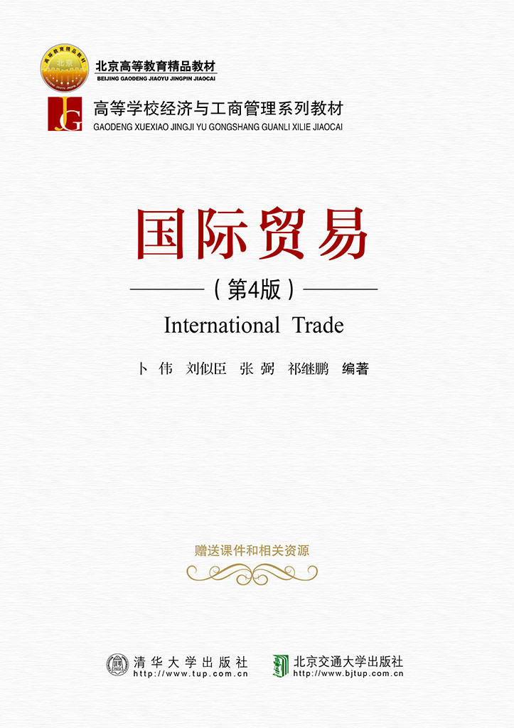 国际贸易是北京交通大学经济管理学院重点课程建设启动后,对国际贸易课程。《国际贸易(第4版)》共分为13章。第1章是导论,第2~6章是国际贸易理论,第7~10章是国际贸易政策措施,第11章是国际要素流动与国际贸易,第12章是贸易政策的政治经济学,第13章是国际贸易研究新领域。 本书具有体系流畅、知识新颖、可读性强等特点,既可作为经管类专业本科生的教材,也可作为MBA、MIB和专科生的教材,以及涉外经济实务工作者和理论工作者研究国际贸易问题的参考书。