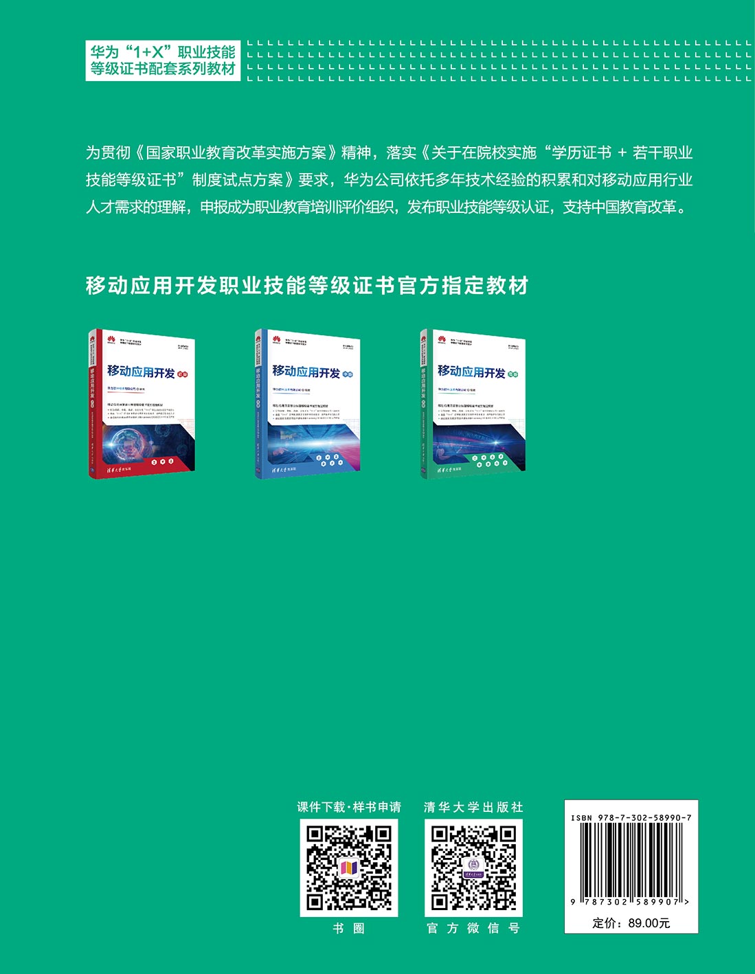 本书是一部系统论述移动应用开发的教材,适合零基础学习者。全书共分为五篇: 第一篇为Java编 程和Web开发基础(第1章~第4章),介绍了开发环境搭建、Java基础语法、Web前端开发基础概念、后 端开发基础概念以及Vue、Spring Boot和MyBatis等开发框架; 第二篇为Android应用开发(第5章、第6 章),介绍了Android开发的基础知识、四大组件(Activity、Service、Broadcast Receiver和Content Provider) 开发、UI开发、线程间通信、数据存储、网络开发、多媒体技术、SQLite数据库存储、Android的测试和 Android架构组件的技术基础; 第三篇为HarmonyOS应用开发(第7章、第8章),介绍了HarmonyOS、 Feature Ability开发、基于Java语言和JavaScript语言的两种UI框架、数据管理、设备管理、多线程开发、 网络开发、安全以及分布式应用迁移的开发案例; 第四篇为HMS应用开发(第9章、第10章),概述了 HMS的基本知识,并以账号服务、推送服务、应用内支付服务、定位服务、广告服务、安全检测服务和机器 学习服务为例介绍HMS开发的基础服务; 第五篇为综合案例,给出了一个实战项目———在线学习网站项 目,介绍了项目需求分析、架构设计、接口设计、数据库设计,以及Android客户端实现、HMS功能客户端 实现和Spring Boot服务器端的实现,最后还增加了客户端的单元测试和UI测试的实现。