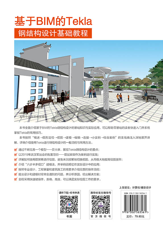 本书按照“概述→图形定位→视图→建模→编辑→连接→小实例→综合案例”的主线由浅入深地展开讲解,详细介绍使用Tekla进行钢结构设计的一般流程与常用方法。