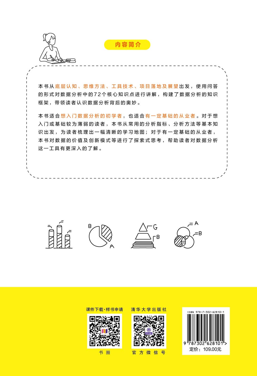 《数据分析师手记:数据分析72个核心问题精解》从底层认知、思维方法、工具技术、项目落地及展望出发,使用问答的形式对数据分析中的72个核心知识点进行讲解,构建了数据分析的知识框架,带领读者认识数据分析背后的奥妙。读者可以用本书作为学习地图,针对具体的方法、技术进行延伸学习。