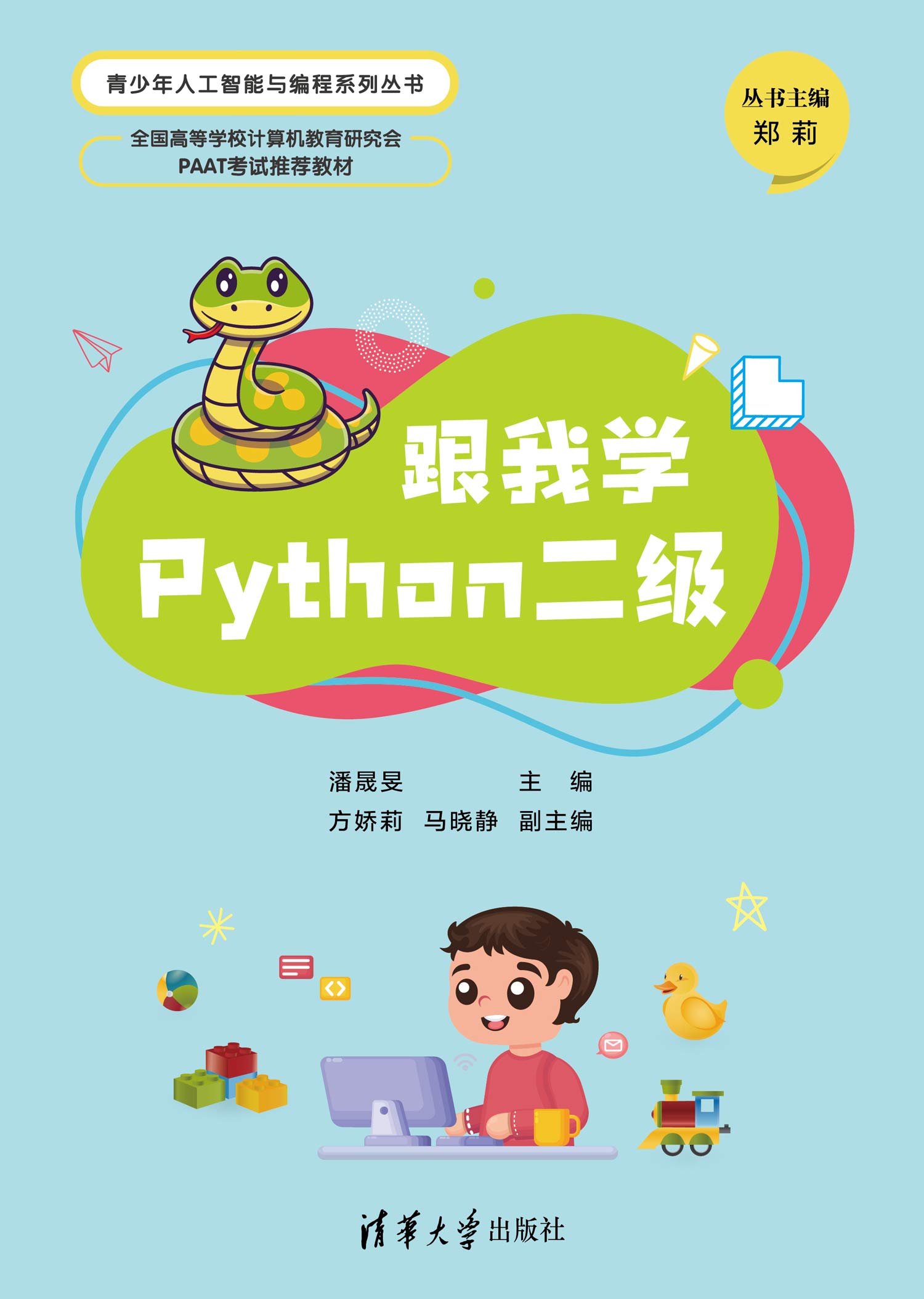前 言 Foreword 国家大力推动青少年人工智能和编程教育的普及与发展,为中国科技自主 创新培养扎实的后备力量。Python语言作为贯彻《新一代人工智能发展规划》 和《中国教育现代化2035》的主流编程语言,在青少年编程领域逐渐得到了 广泛的推广及普及。 当前,作为一项方兴未艾的事业——青少年编程教育在实施中陷入因地区 差异、师资力量专业化程度不够、社会培训机构庞杂等诸多因素引发的无序发 展状态,出现了教学质量良莠不齐、教学目标不明确、教学质量无法科学评价 等诸多“痛点”问题。 本书以团体标准《青少年编程能力等级 第2部分:Python编程》(T/ CERACU/AFCEC/SIA/CNYPA 100.2—2019)为依据,内容覆盖Python编程 二级,共12个知识点。作者充分考虑二级对应的青少年年龄阶段的学业适应度, 形成了以知识点为主线,知识性、趣味性、能力素养锻炼相融合的,与全国青 少年编程能力等级考试(PAAT)标准相符合的一套适合学生学习和教师实施 教学的教材。 “育人”先“育德”,为实现立德树人的基本目标,课程案例涵盖了中华民 族传统文化、社会主义核心价值观、红色基因传承等思政元素,注重传道授业 解惑、育人育才的有机统一。融合“标准”“知识与能力”和“测评”,以“标准” 界定“知识与能力”,以“知识与能力”约束“测评”,是本书的编撰原则及核 心特色。用规范、科学的教材,推动青少年Python编程教育的规范化,以编 程能力培养为核心目标,培养青少年的计算思维和逻辑思维能力,塑造面向未 来的青少年...
