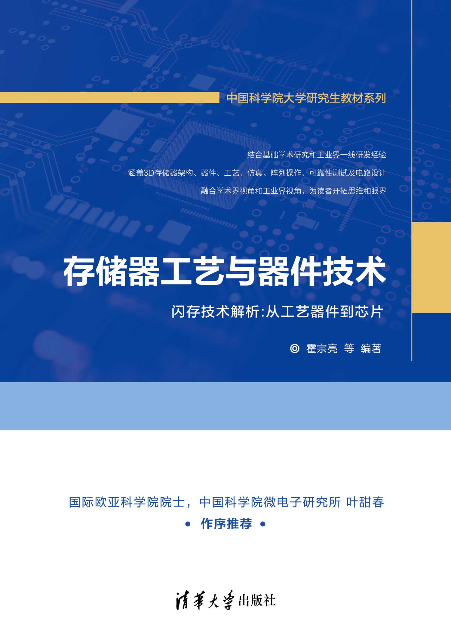 前言 随着大数据、云计算、物联网的兴起,人类社会的工作和生活产生了海量的数据。这些海量数据对新一代存储技术提出了新要求: 大容量、高速率、低成本。NAND Flash作为存储容量大、读写速度快、工艺成本低的半导体存储器,已经成为存储技术中的主流器件。 NAND闪存全球市场已超过每年600亿美金,并在持续快速增长。为了应对庞大的存储需求,需要持续推进闪存和相关存储技术的研发。然而,目前国内还没有关于存储技术的系统性书籍和教材。本书以中国科学院大学院级“研究生优秀课程”——“存储器工艺与器件技术”课程讲义为基础,结合我国自主的3D NAND Flash技术研发实践经历,集众多教师和学生的共同努力撰写而成。衷心希望本书能够助力我国在集成电路专业相关学科,特别是存储技术方向的人才培养,也希望本书能够为我国的存储技术持续创新和存储器事业贡献绵薄之力。 本书共12章,第1章宏观地介绍半导体存储器的国内外市场状况和分类。第2章主要介绍NAND Flash的发展历史,2D NAND Flash微缩过程中的挑战,以及3D NAND Flash的架构发展历程。第3章详细介绍3D NAND Flash的具体工艺流程,具体分析集成工艺中的挑战。第4章介绍3D NAND Flash的器件电学特性,分析具体操作的物理机制,对多晶硅沟道技术和器件基本特性进行详细介绍。第5章介绍3D NAND Flash的器件模型仿真技术,主要针对TCAD仿真平台及其在2D NAND Flash和3D NAND Flash上的应用进行具体介绍。第6~8章分别介绍3D NAND Flash阵列操作、可靠性技术和...