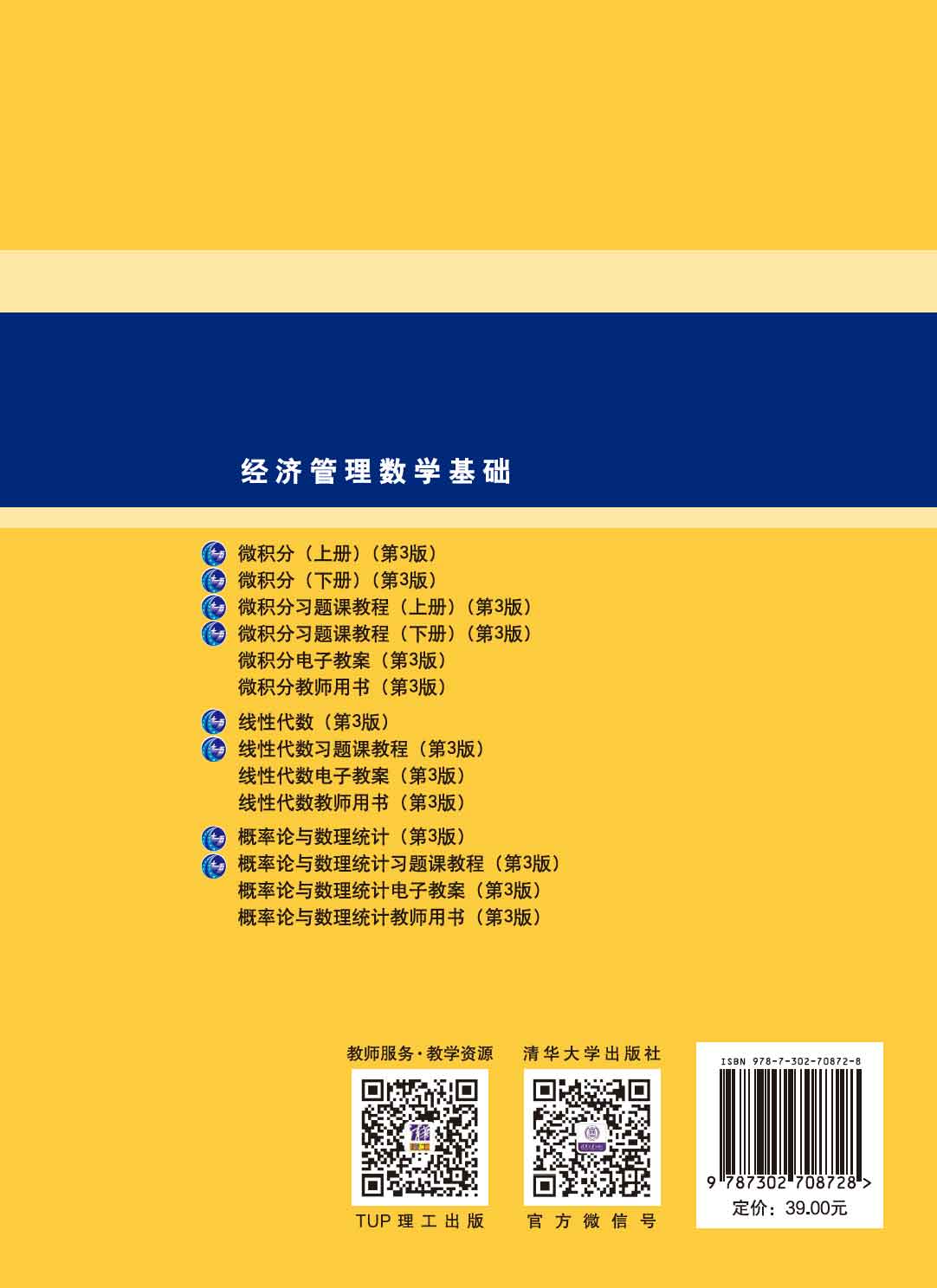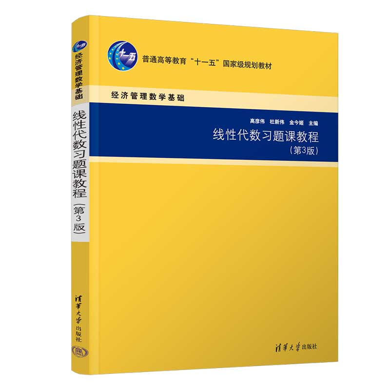 第3版前言 经济管理数学基础《线性代数习题课教程》教材第2版已出版10年了,感谢 兄弟院校的关注和广大同学们的使用.在国家推进新文科建设的背景下,根据当 前教学形势的发展及需求,并结合我们近几年的教学研究与教学实践,认为有必 要对本教材进行再版修订. 本次修订的指导思想: 修订的重点是将纸介质教材与数字资源进行一体化 设计,相互配合、相互支撑,进一步提高教材的适用性和对课程教学的支撑性,形 成新形态教材. 修订的重点内容是配套了数字资源,数字资源包括: 对重点和不易理解的 知识点进行细致讲解;对部分例题和习题中容易出现的错误及问题,也进行了分 析;在每章后针对学习要点增加了综合自测题,数字资源以二维码形式给出.同 时修正了第2版中存在的不当之处和部分习题中的错误,更换了部分例题和 习题. 参 加本书第3版修订工作的有金今姬(第1~2章),杜新伟(第3~4章),高 彦伟(第5~6章),金今姬、杜新伟承担了数字资源的编制、录制工作,全书由高 彦伟统稿. 在本书的修订过程中,得到了吉林大学本科生院、吉林大学数学学院和清华 大学出版社的大力支持和帮助,吴晓俐承担教材修订的编务工作,在此一并表示 衷心的感谢. 由于编者水平所限,书中的疏漏和不当之处,敬请广大读者批评指正,以期 不断完善. 作 者 2025年11月