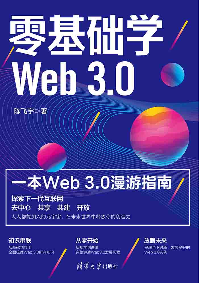 为什么要入门Web 3.0 不可否认,互联网一定会随着人类社会的进步而不断发展,而 Web 3.0 在当下看来是其一个明确的前进方向。通过阅读本书,读者可以提前了解Web 3.0,进而拥有“先发优势”。 Web 3.0 其实囊括了很多当下比较火热的概念,如它的底层采用的是区块链技术,而它的应用是 NFT、元宇宙等,这也是 2022 年下半年上海市政府明确提出要支持探索的全新概念。 本书内容通俗易懂,附有大量的实际案例,特别适合Web 3.0 入门读者以及进阶读者使用。另外,书中的案例也可以给想要在 Web 3.0 时代创业的人提供灵感。 本书特色 知识串联:本书串联了Web 3.0的很多知识。 从零开始:从最基础的钱包、公链入门,从初学到进阶,完整讲述Web 3.0的发展历程。 内容新颖:本书所运用的案例全部选取自当下最新、发展得最好的案例。 经验总结:全面归纳和整理作者多年的Web 3.0理论总结与实践经验。 内容实用:结合大量实例进行讲解,并对同一领域内的多种产品进行对比。 本书内容 本书共11章,分为两大部分:一是关于Web 3.0的基础知识介绍(这部分内容主要针对完全不了解Web 3.0的读者);二是展示Web 3.0领域内的优秀案例。本书是当前市场上为数不多的能将Web 3.0从基础设施(如区块链、钱包、DAO)到实际应用(如GameFi、NFT)串联起来的读物,具有一定的参考价值。 读者阅读本书的过程中若遇到问题,可以发邮件与笔者联系。笔者常用的电子邮箱是feiyuchen2023@icloud.com。