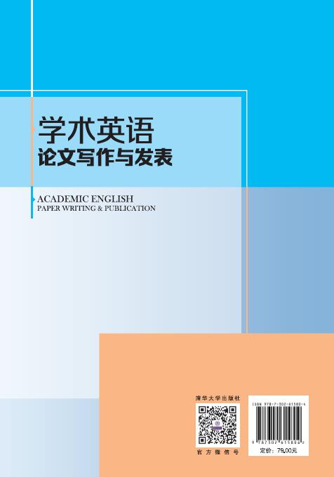 本教材共12 个单元,系统涵盖了学术英语论文的主要组成部分,即学术英语论文各个部分的功 能、基本逻辑发展、语言修辞特征和语言使用模板。此外,本教材还介绍了国际会议往来书信的写作 与海报的制作以及论文发表的相关问题。同时,本教材还聚焦学生写作中常见的错误以及错误产生的 原因。各单元的具体内容为:学术英语论文写作中的引言;文献综述;研究方法;研究结果;结果讨论; 研究结论;摘要与标题;参考文献;学生写作常见错误分析;中式英语与标准英语对比;国际会议海 报及数据展示;论文发表。教材配备PPT 课件和练习答案,读者可登录ftp://ftp.tup.tsinghua.edu.cn 下 载使用。 本教材适用于非英语专业的硕士和博士研究生、本科高年级学生以及科技和人文学科的学者和 教师。