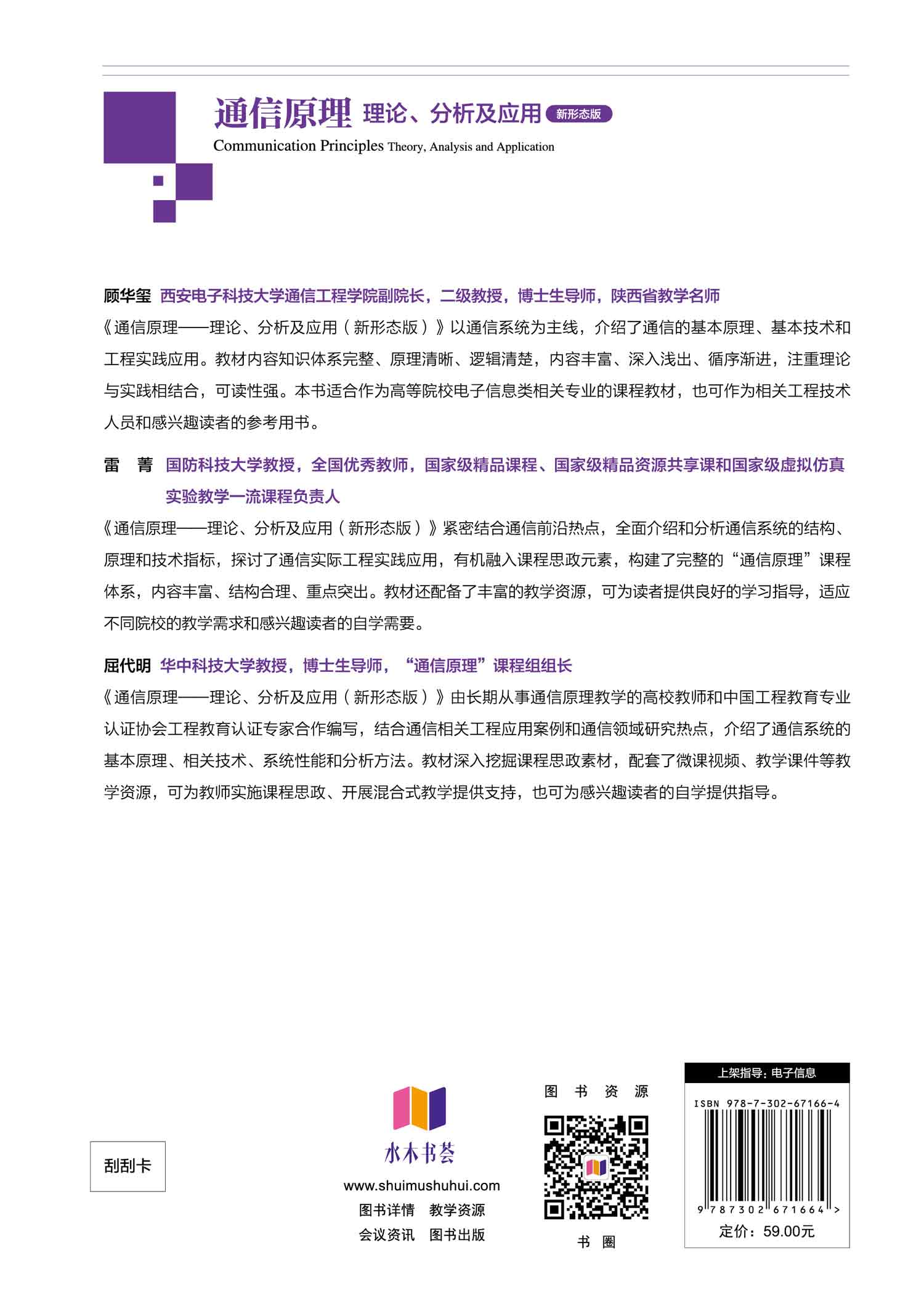 l 传承经典,突出前沿。沿袭了经典通信原理体系架构的同时,探讨了现代通信的发展动态,便于读者了解现代通信领域的研究热点和研究动向。