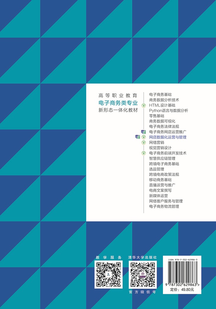 本书深入贯彻落实党的二十大精神,以落实立德树人为根本任务,在践行“探古今商道,铸网店商魂;提运营之质,增管理之效”的初心使命中形成以下特色:①构建“古今相承、虚实相接、中外相融”的内容体系。在教材内容编排上,立足电子商务行业企业的**实践,体现新零售时代网络店铺与实体店铺相互融合、数据赋能的趋势,围绕“人”“货”“场”三大核心要素,开设网店定位谋划、网店商品运营、网店流量运营、网店客户运营、网店绩效管理、网店运营与管理综合实训六个层次分明的专题,在实训项目设计和典型案例的选取上,既涵盖淘宝网店、京东网店等国内电商领域,又涉及速卖通网店、亚马逊网店等跨境电商领域,从而形成“古今相承、虚实相接、中外相融”的内容体系。②支持“课堂教学、网上自学、实训促学”混合教学。本书为首批入驻国家高等教育智慧教育平台优质课程“网店运营与管理”的配套教材,开发了微课、动画、课件、题库、案网店数据化运营与管理例、操作视频、拓展资料等丰富多样的教学资源。③实现“课岗融合、课赛融汇、课证融通”综合育人。本书以电子商务技能竞赛典型任务为抓手,以赛促学、以赛促教,积极对接1+X 网店运营推广职业技能等级证书和电子商务数据分析职业技能证书,重构教材内容,不断增强教材内容供给与行业企业需求之间的匹配度。