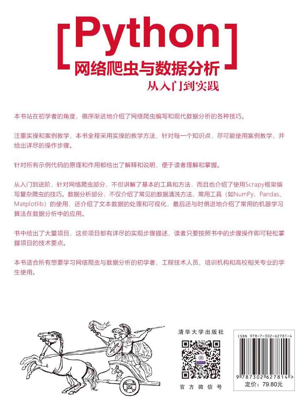 涉及多种流行的热门框架,包括爬虫框架如Urllib、BeautifulSoup、Scrapy,常用的数据分析库如Numpy、Pandas、Matplotlib等都进行了详细介绍。
