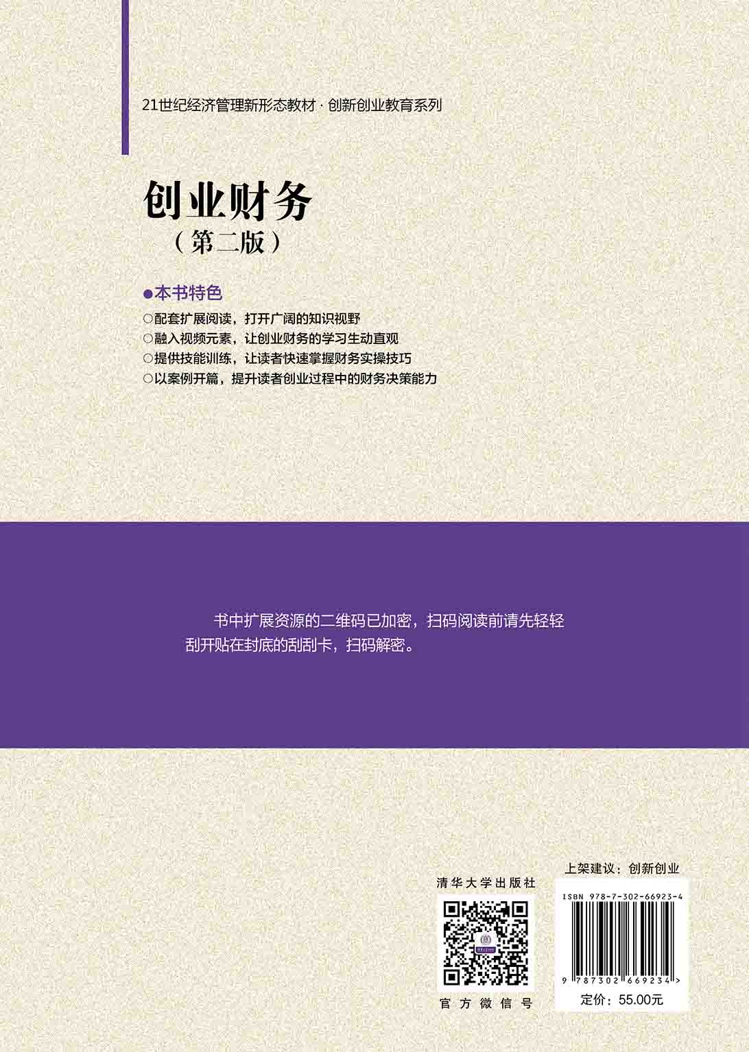 "本书对初创企业涉及的资金筹集、股权设计、资金投放、资金的日常管理、纳税筹划等问题进行了深入探讨,对于收入和成本管理、财务报表以及创业企业的财务会计制度建设进行详细阐述,将财务管理学科的内容和创业活动的特点充分结合。本书既考虑财务管理的核心内容,又专注于创业企业的独特性,将研究范畴限定在企业初创期。无论是资金需求量的预测方法、资金投放的决策标准、资金管理的日常工具,还是成本管理的独特视角、报表分析的侧重点,以及财务会计制度的建设,均只讨论了从创办企业开始到盈利为止的经营期间,内容更有针对性,方法更具操作性,知识更富创新性。 每章以知识导入或故事思考开始,引发读者好奇心,以创业案例和技能训练结束,应用所学知识、检验学习结果,有始有终,形成学习闭环;课程视频、扩展阅读等栏目,提供更多相关案例和创业故事等内容,扩展知识的获取方式和渠道,为不同学习习惯的学生提供便利。 本书可作为高等学校创新创业相关课程教材。社会上的创业者、风险投资家、创业导师、创业园和孵化器工作人员等也可以将其作为案头读物,丰富自己的创业知识,提高创业教育和创业指导的能力以及创业的实践技能。"