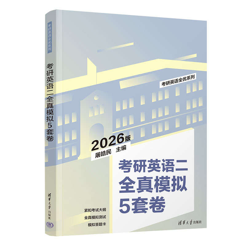 前..言 考试的脚步声日趋临近。在备考冲刺阶段,除了进行核心词汇的记忆、重点或易错题型的突破之外,模拟试卷的练习有助于检测考研复习效果,帮助考生更具针对性地进行考前冲刺。本书紧扣新版考研英语大纲,共五套考研英语(二)全真模拟试题,旨在帮助考生在备考冲刺阶段查缺补漏。本书内容包括模拟试题、答案速查、试题解析和模拟答题卡四部分。模拟试题精选真题题源文章,贴近真题难度,模拟真题版式。答案速查供考生快速检测刷题效果。试题解析从思路破解、难句突破、参考译文等维度对试题进行细致、透彻的分析,帮助考生提升英语水平和应试能力。模拟答题卡助力考生提前适应涂卡节奏,还原考场真实场景。本书特色如下。 1. 紧扣大纲,贴近真题 全真模拟卷严格按照考研英语大纲及样卷的标准和要求,参照历年真题,并经过多次课堂测试后反复修订而成,其命题思路和难度贴近真题。 2. 详解详析,有错必纠 独立分析试题需要花费很长的时间,况且有些解题思路并不是最优。有些考生在解题过程中还会出现不会做的题目,此时考生需要正确的解题思路。本书的试题解析部分由编者团队在课堂教学中反复打磨而成,从思路破解、难句突破、参考译文等维度解析试题,旨在培养考生独立分析问题和解决问题的能力,有利于激活学生的创新思维,真正达到“疑有所答、惑有所解、问有所引”的效果,从而帮助考生提升英语水平和应试能力。 3. 全真排版,高效助考 经过多轮的真题复习之后,考生对真题命题思路会有清晰的认知。在备考冲刺阶段,全真模拟卷能提供除真题之外的全新内容,其排版按照真题版式,帮助考生提前适应真实考试的节奏,提高备考效率。 希望本书可以帮助广大考生在考研...