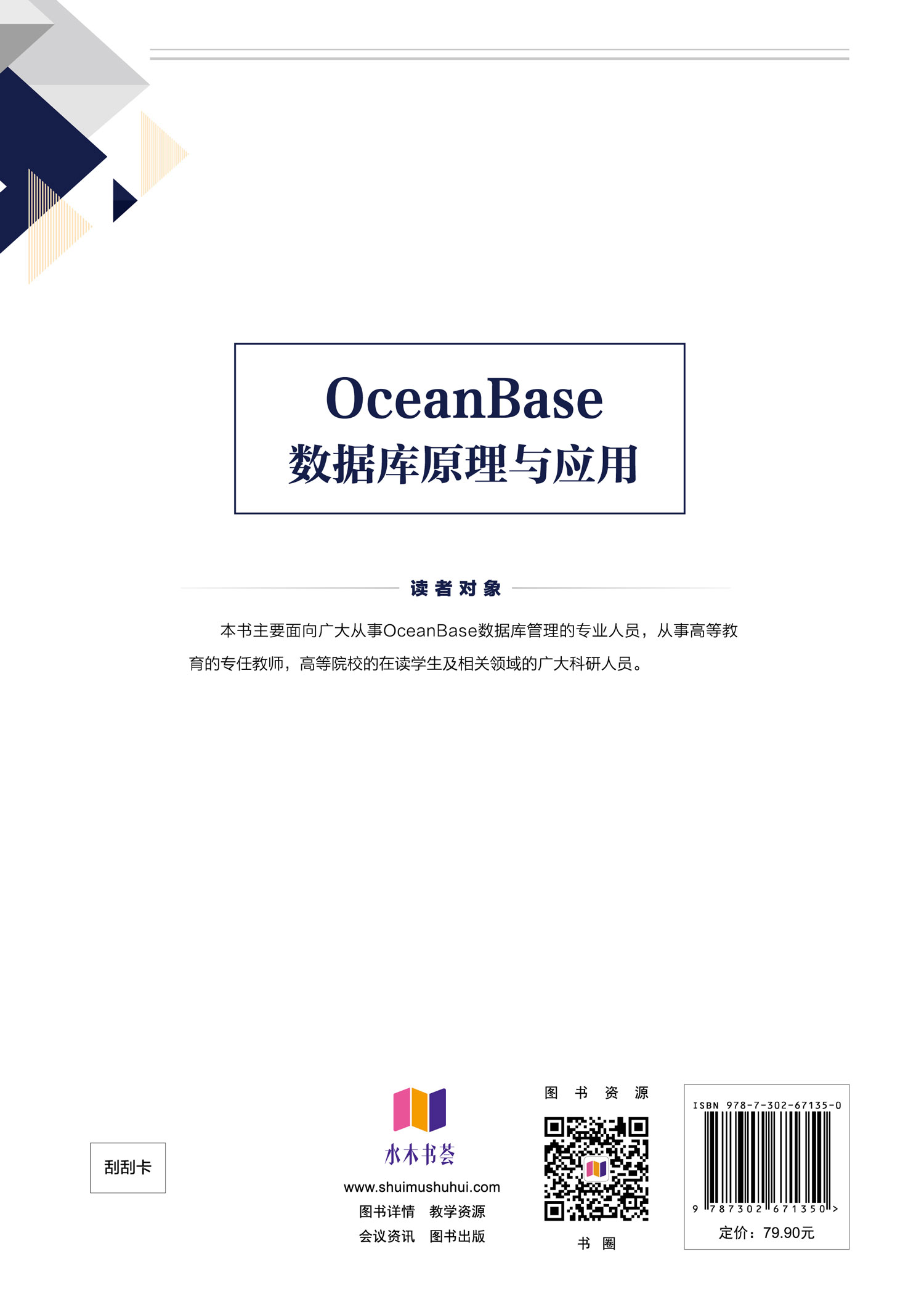 "本书理论和实践相结合,循序渐进地介绍关于OceanBase数据库的起源到商用的过程,重点对常用的使用场景做了较全面的介绍。全书共9章,分别介绍分布式数据库的发展历程、OceanBase集群技术架构、OceanBase集群规划与部署、OceanBase租户管理、OceanBase数据库连接与OBProxy管理、OceanBase存储引擎技术、OceanBase数据迁移、OceanBase集群管理与维护和OceanBase备份与恢复等知识,本书的示例均来自客户现场实践或自己测试。 本书主要面向广大从事OceanBase数据库管理的专业人员,从事高等教育的专任教师,高等院校的在读学生及相关领域的广大科研人员。 "