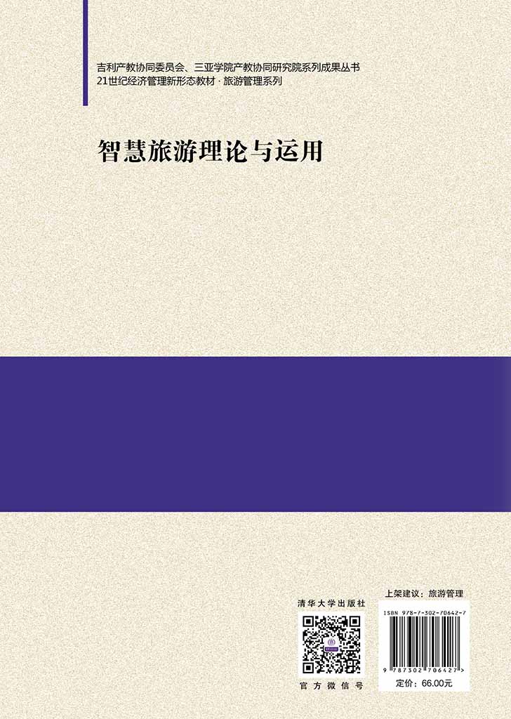 前 言 在互联网技术创新驱动下,智慧旅游不断在新常态下扩大内需,成为推动经济发展的新动能。目前,许多旅游目的地都在进行现代化改造,在互动活动、管理模式等方面增加对智能技术的使用。其最终目的是通过技术创新和实践来提高资源管理效率、最大化竞争力,并增强可持续性。我国在智慧旅游及智慧城市领域的发展已取得一定成就。 本书根据我国智慧旅游建设与发展形势和旅游行业对从业人员的技能和素质的基本要求,遵循应用型本科院校学生的认知规律,在内容设置和计划安排上,充分体现对智慧旅游建设实践应用和智慧旅游领域创新的指导性学习目的。 本书围绕智慧旅游这一主题,系统介绍了智慧旅游的起源、发展现状及趋势,以及相关的核心技术和应用,详细阐述了3S技术、互联网技术、虚拟现实技术、人工智能、物联网技术和云计算技术等现代科技在智慧旅游领域的应用与影响。此外,本书还深入探讨了智慧旅游景区、酒店以及云数据平台的建设,并提供了智慧旅游运营管理模式的分析和实践案例的介绍。这些内容不仅展示了智慧旅游技术的创新成果,还反映了智慧旅游在提升旅游体验、促进旅游业发展方面的重要作用。通过对本书的学习,读者可以全面了解智慧旅游的技术原理、应用实践和发展趋势。本书还涉及智慧旅游服务、运营管理、旅游大数据分析、旅游网络营销、旅游电商运营、智慧文旅产品设计、旅游信息系统运维等内容,有助于培养“互联网+”旅游复合型人才,提高学生的实践能力,培养学生的创新精神,让学生具备在旅游行业中进行理论分析和实践运用的能力。 在本书的撰写过程中,我们首先要感谢三亚学院对青年教师的精心培养,这为本书的撰写奠定了坚实的基础。同时,特...