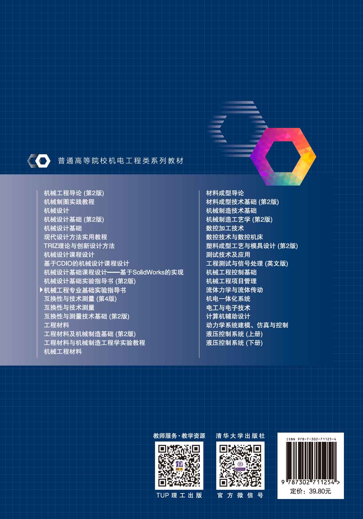 本书的实验内容均为机械类和近机类专业在大学期间必备的实验知识,包含机械原理、机械设计、互换性与技术测量、工程材料、液压传动、机械制图、机械制造基础、数控机床与编程共8个章节的内容。全部实验均是按照**的国家标准进行编写,内容紧跟时代发展,体现其科学性和实用性。"