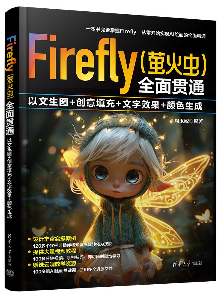前 言 写作驱动 Firefly(萤火虫)是2023年3月22日Adobe推出的创意生成式AI,可由文字生成图像内容。萤火虫允许内容创作者使用自己的文字来生成图像、音频、插图、视频和3D图像。目前,Firefly已经集成在Adobe 组件中,与Photoshop、Illustrator等软件一起提供给大家使用。 Firefly是Adobe产品中新的创意生成AI模型系列,它专注于图像和文本效果生成。Firefly将提供构思、创作和沟通的新方式,同时能显著改善创意工作流程。 本书以Firefly AI智能绘画指令与范例为主题,带领读者深入了解Firefly AI智能绘画的实际应用技巧,掌握运用各种AI指令生成绘画内容的方法。 本书特色 1. 40多个温馨提示放送。作者在编写时,将平时工作中总结的软件各方面的实战技巧、设计经验等毫无保留地奉献给读者,不仅大大提高了本书的含金量,还方便读者提升对软件的实战技巧与经验,从而大大提高读者的学习与工作效率。 2. 120多个技能实例奉献。本书通过大量的技能实例来讲解软件,这些技能实例共计123个,包括软件的基本操作、以文生图、创意填充、文字效果、图形着色等内容,帮助读者从新手入门到后期 精通。实例通俗易懂,可帮助读者全面吸收知识点,让学习更高效。 3. 100多分钟视频演示。本书的软件操作技能实例,全部录制了带语音讲解的视频,重现书中所有实例操作,读者可以结合书本,也可以独立地观看视频演示,像看电影一样进行学习,让学习更加轻松。 4. 100多组AI关键词奉送。为了方便读者快速生成相关的AI画作,特将本书实例中用到的关键词...