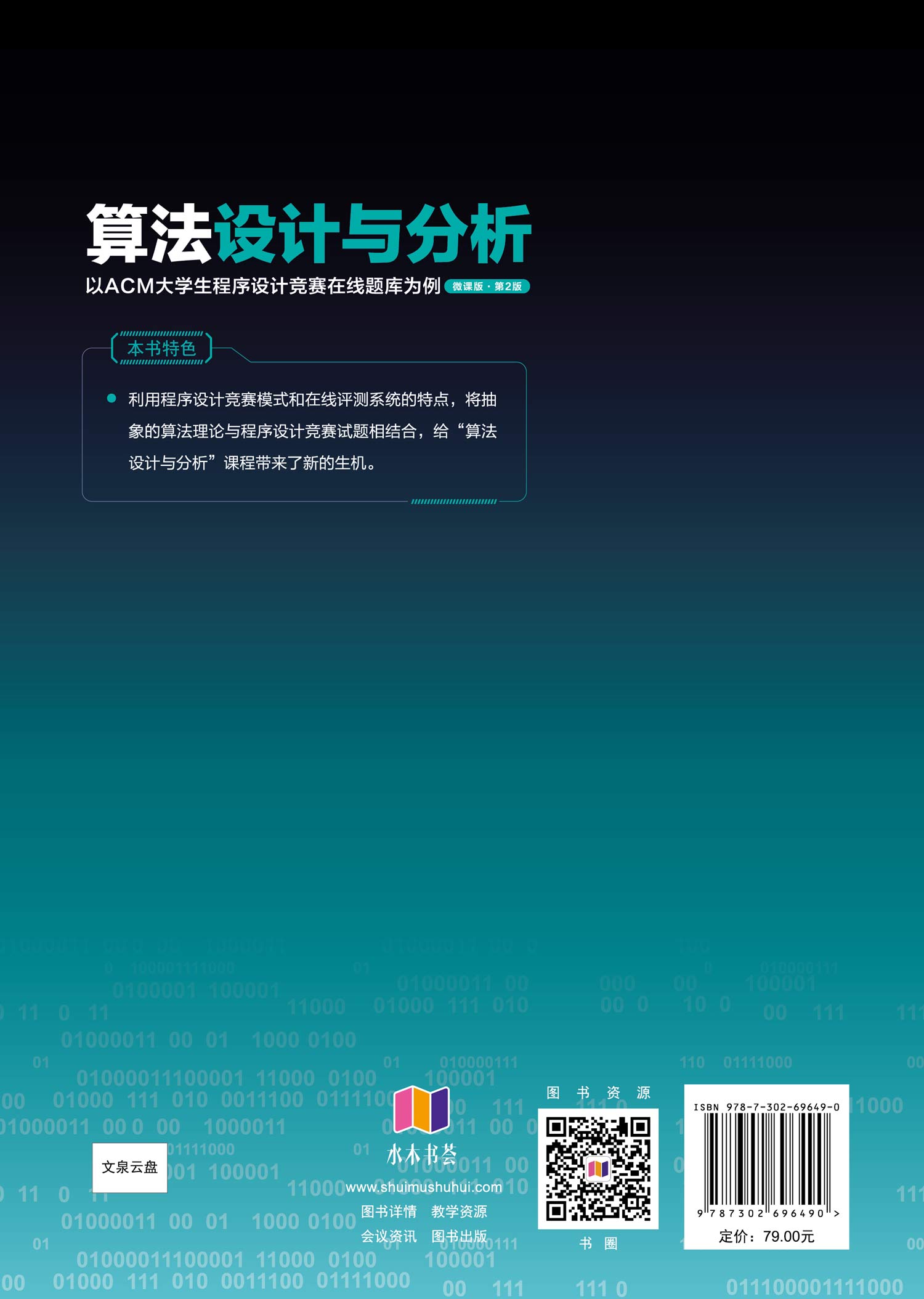 "本书以经典算法设计为重点,主要介绍数据结构和标准模板库、递归与分治策略、动态规划、贪心算法、回溯算法、分支限界算法、图的搜索算法、图论、数论和组合数学问题。本书包括大量的问题实例,并在洛谷北京大学、浙江大学和杭州电子科技大学在线题库中精选原题,详细地分析解题的方法,深入浅出地讲解用到的算法,章后的上机练习题也选自在线题库中的典型题目,供读者练习,以巩固所学算法。本书内容基本上涵盖了目前大学生程序设计竞赛所要掌握的算法。 本书结构清晰、内容丰富,适合作为计算机科学与技术、软件工程以及相关学科算法课程的教材或参考书,特别适合有志于参加信息学竞赛和ACM大学生程序设计竞赛的读者学习和训练。 "