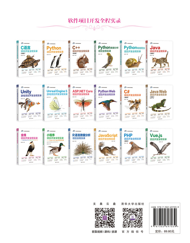 前言 丛书说明:“软件项目开发全程实录”丛书第 1 版于 2008 年 6 月出版,因其定位于项目开发案例、面向实际开发应用,并解决了社会需求和高校课程设置相对脱节的痛点,在软件项目开发类图书市场上产生了很大的反响,在全国软件项目开发零售图书排行榜中名列前茅。 “软件项目开发全程实录”丛书第 2 版于 2011 年 1 月出版,第 3 版于 2013 年 10 月出版,第 4 版于2018 年 5 月出版。经过 16 年的锤炼打造,不仅深受广大程序员的喜爱,还被百余所高校选为计算机科学、软件工程等相关专业的教材及教学参考用书,更被广大高校学子用作毕业设计和工作实习的必备参考用书。 “软件项目开发全程实录”丛书第 5 版在继承前 4 版所有优点的基础上,进行了大幅度的改版升级。首先,结合当前技术发展的最新趋势与市场需求,增加了程序员求职急需的新图书品种;其次,对图书内容进行了深度更新、优化,新增了当前热门的流行项目,优化了原有经典项目,将开发环境和工具更新为目前的新版本等,使之更与时代接轨,更适合读者学习;最后,我们录制了全新的项目精讲视频,并配备了更加丰富的学习资源与服务,可以给读者带来更好的项目学习及使用体验。 在数字化浪潮席卷全球的当下,全栈项目凭借其全面性和高效性,成为软件开发领域的璀璨明星。全栈项目不仅涵盖了前端精美的界面设计,为用户带来直观且流畅的交互体验,还涉及后端强大的数据处理与逻辑运算,保障系统的稳定运行。它打破了前后端的技术壁垒,让开发者能以全局视角构建完整的软件系统。本书以中小型项目为载体,带领读者切身体验软件开发的实际过程,可以让读者深刻体会前后端...