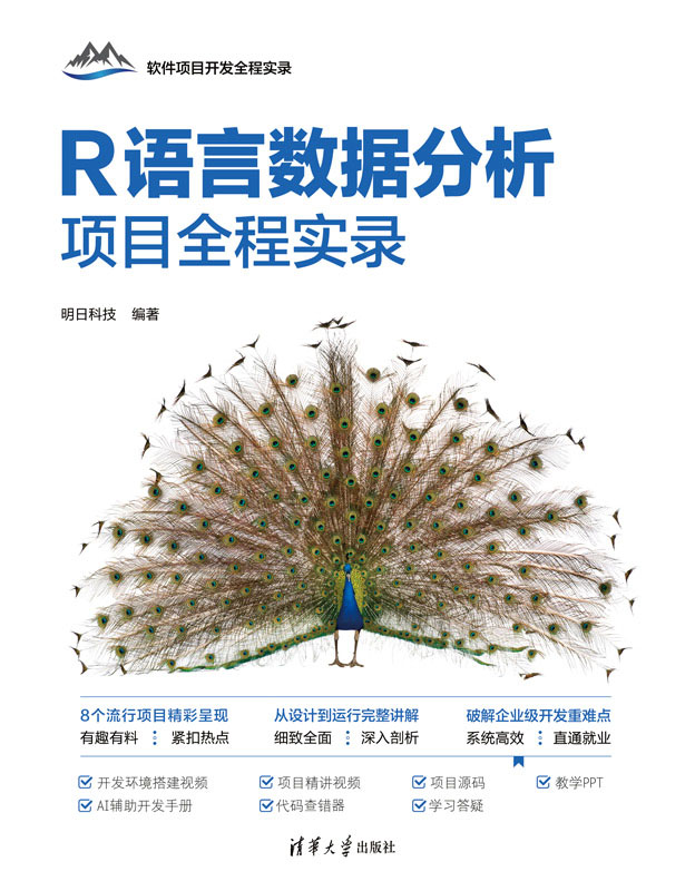 2.体系化教学,零门槛上手:不同于零散的教程,《R语言数据分析项目全程实录》遵循 “开发背景→系统设计→技术准备→功能实现→项目运行→源码下载” 的项目开发流程,每章聚焦一个完整项目。读者无需担心思路断裂,跟着步骤操作即可产出可落地的成果,快速积累真实数据分析经验,收获清晰的学习成就感。