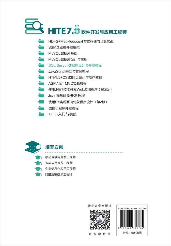 编 委 会 主 编: 余 剑 黄城宣 黎 泽 李 闯 副主编: 马雪皎 唐晨钧 刘舒桐 杨筱慧 编 委: 黄湘寒 李俊双 曾永添 农 铮 谢鸿稳 陈广寿 詹谨恒 夏 霖 王宇翾 主 审: 王 慧 前 言 随着信息技术的飞速发展,数据库技术已经成为信息系统的核心组成部分。SQL Server 作为一种广泛应用的数据库管理系统,以其强大的功能和灵活的扩展性,成为许多企业和开发人员的首选工具。SQL(Structured Query Language,结构化查询语言)的主要功能是与各种数据库建立联系并进行沟通,它是关系数据库管理系统的标准语言。SQL语句则用于执行任务,如更新数据库中的数据或从数据库中检索数据。一些常见的使用SQL的关系数据库管理系统包括Microsoft SQL Server、MySQL、PostgreSQL、MariaDB和Oracle。Microsoft SQL Server 2022是一款全面而强大的关系型数据库管理系统(Relational Database Management System,RDBMS),它提供了广泛的数据管理和分析功能,适用于企业级应用程序和数据仓库。SQL Server 2022经过改进引入了许多新特性,以应对不断演进的技术挑战和业务需求。 《SQL Server数据库设计与开发教程》属于广西壮族自治区“十四五”职业教育规划教材培育项目,采用工单式和技术手册式相结合的设计方案,可作为现场工程师人才培养用...