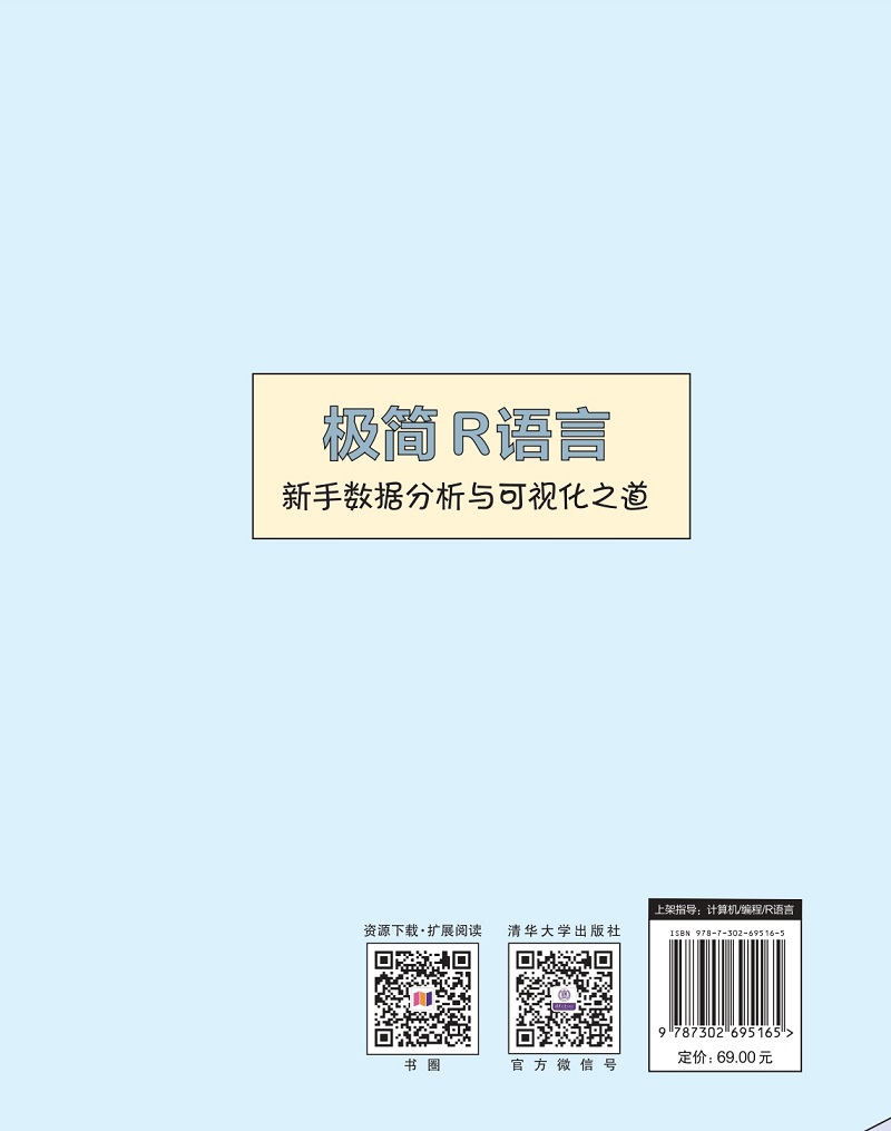 "《极简R语言:新手数据分析与可视化之道》系统讲解 R 语言基础、数据操作、清洗、可视化及统计分析与建模,全书11章通过 循序渐进案例教学 与丰富 代码示例,帮助读者边学边练,快速掌握实战技能。 适合高校学生作为教材与参考书,同时也是数据分析新手、职场用户及科研人员的自学参考。无论新手或有经验者,都能通过本书快速上手项目,轻松完成数据分析与可视化任务,提升工作效率。"