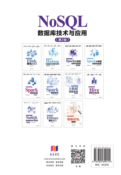 "本书全面介绍NoSQL的基础知识及其实际应用,涵盖NoSQL领域的4种典型数据库类型,旨在为读者提供系统且深入的学习体验。全书共10章,内容结构清晰,依次讲解NoSQL的基础理论,MongoDB、Redis、HBase和Neo4j的基本概念与应用,并通过将分布式计算引擎与NoSQL技术有机结合,展示NoSQL在实际应用场景中的强大功能。 本书附有丰富的教学资源,包括配套教学视频、PPT课件、教学设计等,并特别为初学者提供在线答疑服务,帮助读者更好地掌握书中的知识内容。 本书既适合作为高等学校大数据及相关专业的教材,也适合大数据工程师、数据分析师等相关领域从业者参考和学习。 "