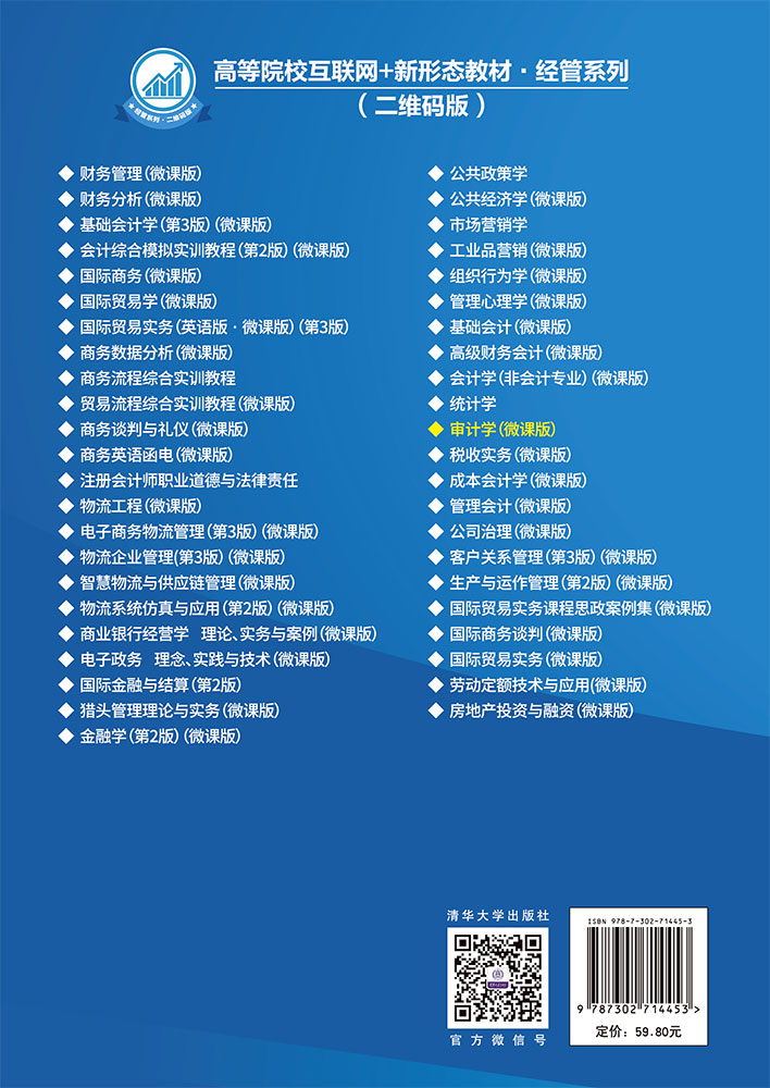 "《审计学(微课版)》是一本理论与实践融合、技能素养并重、技术创新驱动的多维度开发的应用型教材,穿插校企合作真实案例,围绕财务报表审计展开,按照交易循环。此外,还涵盖了审计报告的编制,包括完成审计工作后的报告撰写要求与规范,以及验资与其他鉴证业务等内容,主要适用于高等院校会计学、财务管理、审计学专业的学生使用。