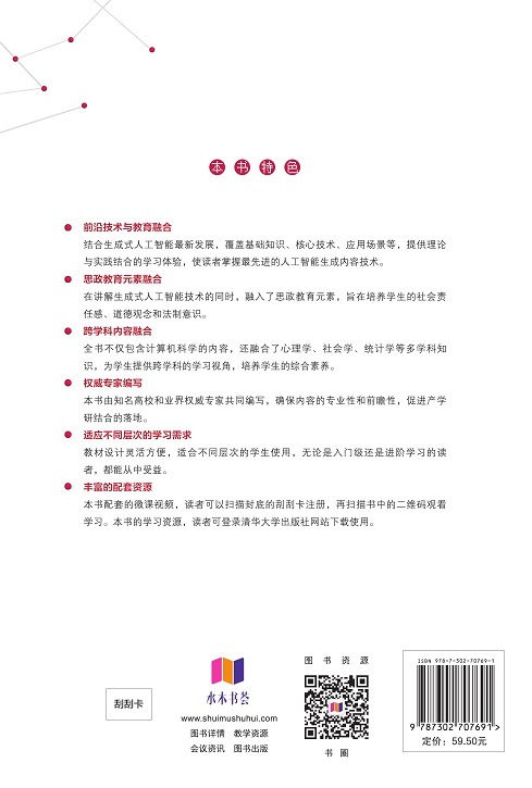 本书全面系统介绍了生成式AI的基础理论、核心技术、应用场景以及社会影响,内容丰富、结构清晰、理论与实践相结合,既适合高等院校相关专业的师生作为教材使用,也适合作为AI领域从业者、研究人员以及对AI技术感兴趣的读者的自学参考书籍。