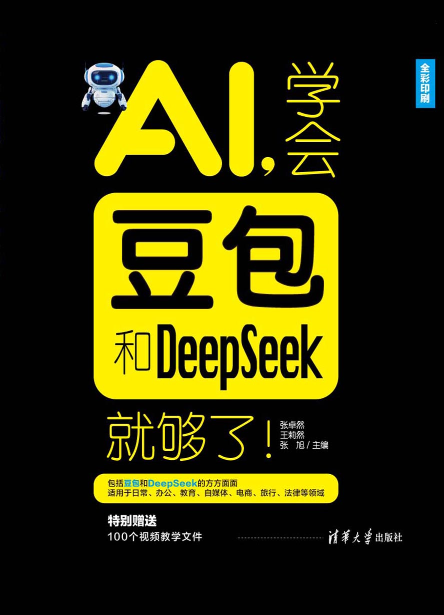 "《AI,学会豆包和DeepSeek就够了!》作为豆包和DeepSeek的学习指南,全面、细致地介绍豆包和DeepSeek的使用方法以及实操案例,力求通过简单易懂且抽丝剥茧的解析,让读者轻松掌握并应用豆包和DeepSeek。 《AI,学会豆包和DeepSeek就够了!》共12章,第1章和第2章详细介绍豆包和DeepSeek的特点以及基础操作方法,让读者能更好地了解和使用豆包和DeepSeek;第3~8 章分别介绍豆包和DeepSeek在自媒体电商、创意生成、日常旅行、学习成长、职场工作和教育法律方面的实际案例,确保读者能掌握豆包和DeepSeek在各领域的实际应用;第9章和第10 章具体介绍豆包和DeepSeek的高阶使用技巧,让读者能更全面地使用豆包和DeepSeek;第11章介绍字节跳动旗下除豆包以外的其他拓展实用工具;第12章介绍豆包App的使用方法及丰富功能。本书旨在为读者提供豆包和DeepSeek的全领域使用方法,让读者轻而易举地将豆包和DeepSeek应用到学习、工作以及生活的方方面面。 《AI,学会豆包和DeepSeek就够了!》不仅适合对豆包和DeepSeek感兴趣的初学者和进阶爱好者阅读,也适合希望用豆包和DeepSeek改善学习方式、提高工作效率和增加生活乐趣的广大读者阅读,还可以作为相关院校的教材和辅导用书"