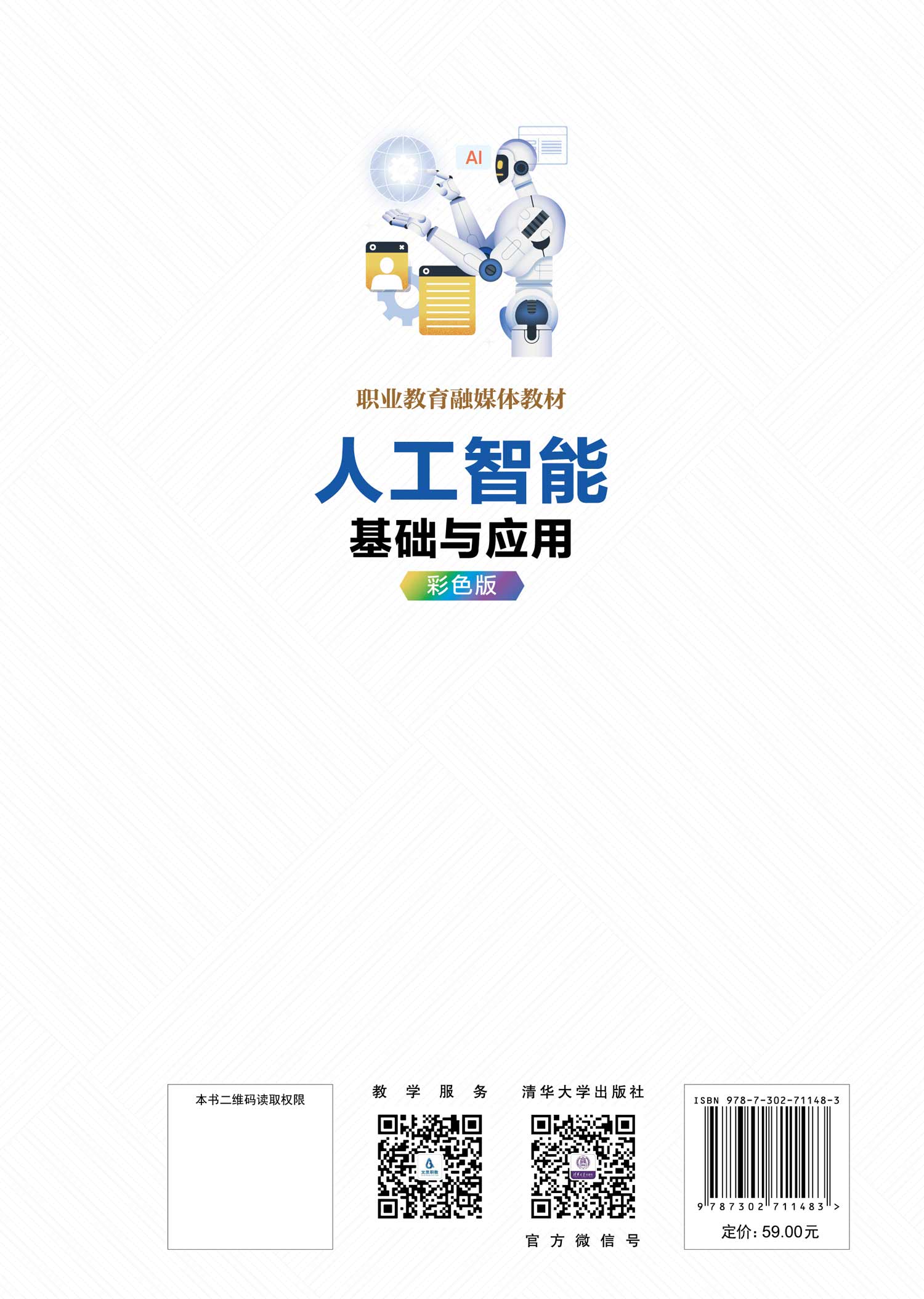 全书内容涵盖人工智能核心领域,构建""基础-应用-前沿""的完整知识体系。在""智启未来""模块中,通过定义溯源、应用解析及社会影响探讨,引导读者建立对AI的认知框架;结合实践案例与问题研讨,使读者既能直观感受技术魅力,又能理性思考其潜在风险与挑战。"