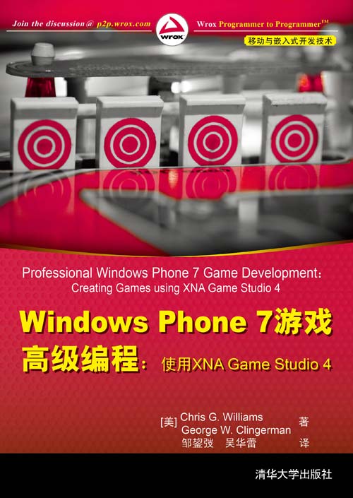 前 言 本书旨在让您迅速了解并喜欢上使用XNA Game Studio 4.0开发Windows Phone 7游戏。 本书也提到了Windows和Xbox 360的游戏开发。但是,毫无疑问,这首先是一本关于Windows Phone 7的图书。 本书涵盖了Windows Phone 7设备的功能,以及如何在游戏中使用它们。在16个章节中,将制作3个游戏,学习很多很酷的知识,并从学习的过程中获得乐趣。 本书读者对象 本书的目标受众是那些想学习如何使用C#和XNA Game Studio 4.0开发Windows Phone 7游戏的人。 本书也适合于那些认为科技书籍厚重并且乏味的人。我们努力使这本书更加轻松有趣,使用对话的语气讲解有用的知识。 书中也会有一些相关的轶事和提示用以提供背景知识和附加信息。 也许您属于下列人群之一: ● 想要将游戏移植到Windows Phone 7的iPhone或Android游戏开发人员。 ● 第一次进行游戏开发的有经验的Windows开发人员。 ● Xbox Live Indie Games的开发人员和想了解XNA Game Studio 4.0中涉及Windows Phone 7的新知识的开发人员。 无论您有无经验,都可以找到一种适合的方式来学习本书。 没有一本书能够满足所有人的需要,所以不得不进行一些假设。这本书将适合部分或全部符合以下条件的读者: ● 您有一些C#或VB.NET的编程经验。虽然本书没有使用VB.NET,但.NET开发人员没有理由学不会。 ● 您有一些XNA(指C#)的使用经验。 ●...