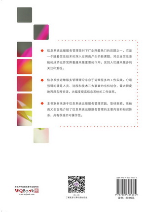 针对信息化建设及培养信息时代高级人才、创新型人才和复合型人才的需要,本书系统全面地介绍信息系统运维服务管理的主要内容和知识体系。全书共分10章,主要内容包括与信息化和管理相关的基本概念、信息技术服务和运维服务管理概述、信息技术治理和信息技术服务标准、信息技术基础架构库、中国的信息技术服务标准、信息系统运维服务的招标与投标、信息系统运维服务的组织机构、信息系统运维服务的用户需求分析和管理、信息系统运维服务的规划设计、信息系统运维服务的管理流程,在每一章最后都给出了该章的小结和习题。 本书取材来源于信息系统运维服务管理实践,取材新颖、内容丰富、概念清楚易懂,具有很强的可操作性,既可作为高等院校相关专业大学生的专业基础课程教材,也可作为相关专业研究生、MBA及从事信息化管理和组织工作的政府公务员的培训教材,还可作为公司经理和企业信息主管(CIO)日常工作的参考手册以及计算机专业教师的教学和工作参考书,对于希望全面了解信息系统运维服务管理知识的各类读者,本书也是一本较好的参考读物。