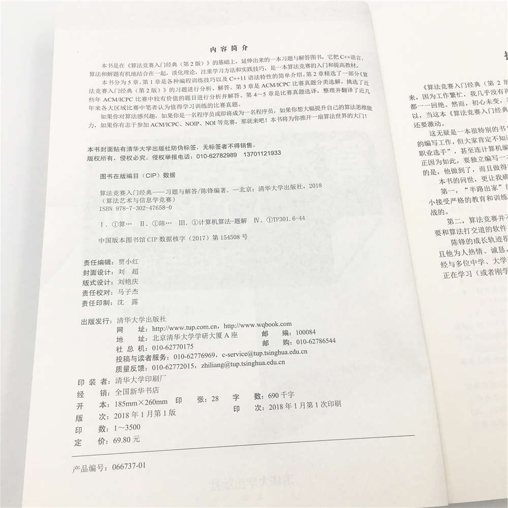 《算法竞赛入门经典——习题与解答》是在《算法竞赛入门经典(第2 版)》的基础上,延伸出来的一本习题与解答图书,它把C++语言、算法和解题有机地结合在一起,淡化理论,注重学习方法和实践技巧,是一本算法竞赛的入门和提高教材。 《算法竞赛入门经典——习题与解答》分为5 章。第1 章是各种编程训练技巧以及C++11 语法特性的简单介绍。第2 章精选了一部分《算法竞赛入门经典(第2 版)》的习题进行分析、解答。第3 章是ACM/ICPC 比赛真题分类选解,挑选了近些年ACM/ICPC 比赛中较有价值的题目进行分析并解答。第4~5 章是比赛真题选译,整理并翻译了近几年来各大区域比赛中笔者认为值得学习训练的比赛真题。 如果你对算法感兴趣,如果你是一名程序员或即将成为一名程序员,如果你想大幅提升自己的算法思维能力,如果你有志于参加ACM/ICPC、NOIP、NOI 等竞赛,那就来吧!《算法竞赛入门经典——习题与解答》将为你推开一扇算法世界的大门! 法竞赛入门经典(第2 版)》的习题进行分析、解答。第3 章是ACM/ICPC 比赛真题分类选解,挑选了近 些年ACM/ICPC 比赛中较有价值的题目进行分析并解答。第4~5 章是比赛真题选译,整理并翻译了近几 年来各大区域比赛中笔者认为值得学习训练的比赛真题。 如果你对算法感兴趣,如果你是一名程序员或即将成为一名程序员,如果你想大幅提升自己的算法思维能 力,如果你有志于参加ACM/ICPC、NOIP、NOI 等竞赛,那就来吧!本书将为你推开一扇算法世界的大门!