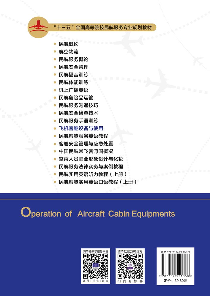 飞机客舱设备与使用从培养高级应用型人才的总体目标出发,结合学生今后实际工作需要,力求通过教材的内容及其展开逻辑,让学生掌握客舱服务岗位所需要的客舱设备的专业知识和操作技能。为了更全面地表述客舱设备使用知识与操作技能,教材参考了国内外有关文件、性能手册、大量网站资源和航空公司材料,在取材上尽量选取和客舱服务工作相关的内容,使之更加适合民航专业人员及非专业人员的需要。同时,为了更形象地展示客舱设备形貌,教材中尽可能多地收集各种机型的图片,增强读者的感性认识。在教材内容的取舍上,本教材兼顾空中乘务本、专科层次的专业课程教学需要,设计了客舱设备与安全,客舱设备的发展及人文因素,客舱布局,机型安全设备,各个设备在不同机型中的位置、使用方法及预先准备阶段检查的注意事项等内容。本教材旨在培养学生具备熟练操作客舱设备与系统的能力;熟练运用客舱设备与系统提供各种客舱服务的能力;维护客舱及旅客安全的能力,遇突发事件,知道基本的处理方法和工作流程,能有效组织旅客快速逃生。