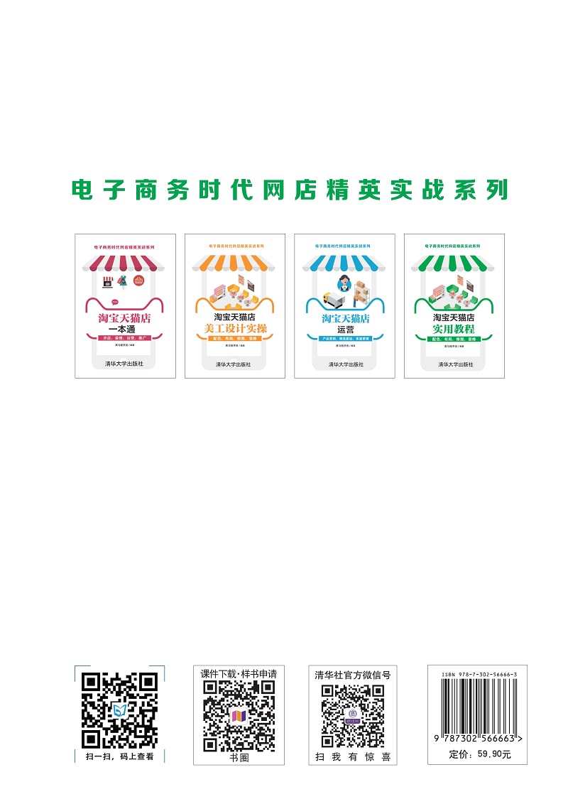 全书共12章,分别介绍电子商务基础理论,淘宝天猫开店前期规划,宝天猫开店及宝贝发布,店铺装修,网店客服管理,电子商务物流概述、网店物流模式的选择、网店仓储管理,搜索优化,商品详情页策划,店铺促销、直通车推广、钻石展位推广、淘宝客推广及淘宝达人推广,打造爆款的思路和流程,店铺数据分析和店铺诊断,淘宝日常营销活动和淘宝节日营销活动策划。本书将帮助读者掌握淘宝网店运营与推广的理论知识及实操技术。