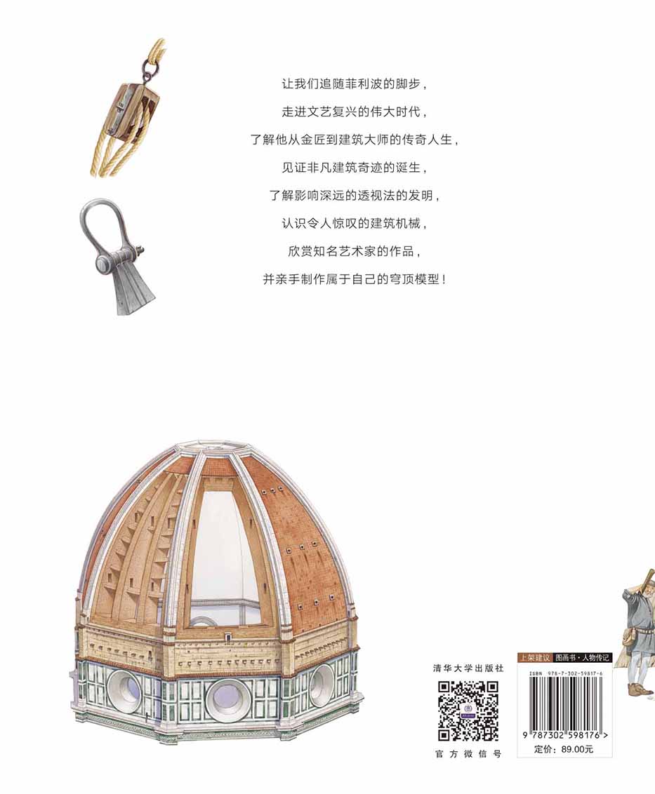14世纪末,意大利佛罗伦萨圣母百花大教堂巨大的缺口已经对着天空敞开了一个多世纪!跨度达54米,距地面高达89米,如果这个穹顶建成,它将成为当时世界上**大的穹顶,甚至超过保持了一千多年纪录的古罗马万神庙。人们一筹莫展,这似乎是一个不可能完成的任务。 菲利波?布鲁乃列斯基提出了一个前所未有的解决方案,评委们都认为他疯了,把他赶了出去。他放弃了吗?没有。他面对的不仅仅是评委们的质疑,还有竞争对手洛伦佐?吉贝尔蒂带来的意想不到的麻烦。菲利波究竟想出了怎样绝妙的主意,经历了哪些挑战?他又是怎样最终完成了这一著名的建筑奇迹? 让我们追随菲利波的脚步,前往佛罗伦萨、罗马,走进文艺复兴的伟大时代,了解他从金匠到建筑大师的传奇人生,见证非凡建筑的诞生过程,了解影响深远的透视法的发明,认识令人惊叹的建筑机械,邂逅很多同时期的知名艺术家,欣赏他们的作品,并亲手制作属于自己的穹顶模型!