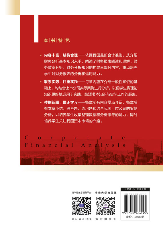 前言 现代企业的特点是投资主体多元化,企业经营权与所有权分离,且经济业务日趋复杂。无论是企业内部管理者,还是企业外部的投资人、债权人、政府部门,在进行经济决策时,都要依据财务报表数据对企业经营绩效进行分析和评价。因此,掌握财务分析理论与方法,具备熟练的财务分析能力非常重要。 本书自2011年出版后,已经连续发行两版,得到读者的认可和厚爱,给了我们极大的鼓励和鞭策,在此深表感谢。近些年,财政部一直在陆续出台新的会计准则,并且不断对原有会计准则进行修订和完善,从而使得会计实务发生相应变化,同时本书所采用的上市公司实际案例也需要及时更新,因此我们对本书再次进行了修订。 考虑到近些年高校普遍压缩了教学课时,本次修订在保持原书体系的基础上对其结构进行了适当调整,目的是使重点更加突出,内容更加精练。具体调整包括:一是将原书第二章“企业经营环境和经营战略分析”和第十三章“财务危机预警分析”的内容作为本书拓展知识,以电子资源形式提供给本书使用者,不再纳入正式出版章节;二是将原书第九章“盈利能力分析”、第十章“投资报酬分析”、第十一章“发展能力分析”的内容合并为一章,即“企业盈利能力与发展能力分析”。调整后,本书内容分为十章:第一章财务分析概述,是对财务报表分析理论和方法的总体介绍,使学生了解财务分析的主体与目的、财务分析的框架、财务分析的信息来源和评价标准以及财务分析的程序和方法;第二章到第五章,结合我国上市公司实际案例,系统介绍了资产负债表、利润表、现金流量表、股东权益变动表的阅读和分析思路;第六章到第八章,主要介绍了评价企业偿债能力、营运能力、盈利能力和发展能力指标的分析方法和分析思...