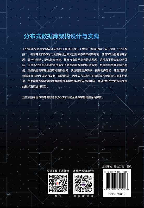 本书第 1、2 章介绍数据库的发展史和现状,讲述分布式数据库的架构,带读者从整体上认识分布式数据库。第 3~5 章着重介绍 AntDB 数据库,对其分布式架构、存储引擎和事务机制等方面进行较为详细的介绍,并且结合实际案例进行说明。第 6、7 章主要介绍分布式数据库的高可用性方案,以及线下实际应用案例,并对高可用性方案的设计进行说明,同时对分布式数据库技术未来的发展进行展望。 本书不是分布式数据库的入门书,适合熟悉数据库理论和概念的读者阅读。对于研发人员,可以将本书作为案头参考书,在日常研发中遇到问题时,可随时借鉴书中内容,快速解决问题。